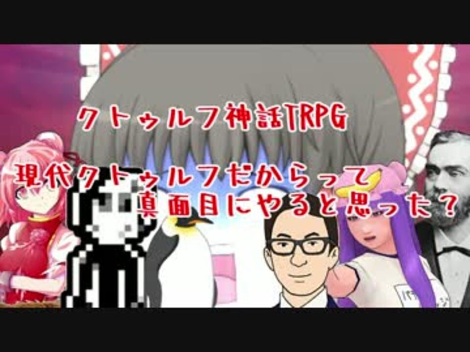 キチガイと下ネタと茶番の温床なので真面目なクトゥルフをお探しの方や茶番を享受できない方はさよならバイバイしてピカ◯ュウとでも旅に出ておいてください<br><br><br><br>あ、実卓リプレイです。<br><br><br><br><span style="color: red; font-size: 48px;">よろしく!</span><br><br><br><br>TRPGまとめ→<a href="https://www.nicovideo.jp/mylist/57073790" target="_blank" rel="noopener">mylist/57073790</a><br>シリーズマイリスト→<a href="https://www.nicovideo.jp/mylist/58347697" target="_blank" rel="noopener">mylist/58347697</a><br>次→<a href="https://www.nicovideo.jp/watch/sm30697123" class="watch">sm30697123</a><br>OPだけのやつ→<a href="https://www.nicovideo.jp/watch/sm30681661" class="watch">sm30681661</a><br>X→<a href="https://x.com/zenon_z2" target="_blank" rel="noopener nofollow">https://x.com/zenon_z2</a><br><br><br><span style="font-size: 10px;">※動画最後のOPですが、モザイク・ノイズ・色ずれ等を多用している関係で重いかもしれないので次回からは無しで行こうと思います。ご了承ください。</span>