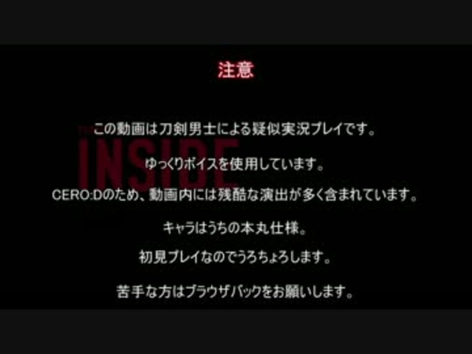 <span style="color: #373737;">鶴丸「ぷらねたりうむ」</span><br> <span style="color: #0080ff;">一期「ぷらねたりむむ」</span><br><br>お久しぶりです。<br> INSIDE本編ではたくさんの再生本当にありがとうございました。<br> <br>・一期さんと鶴丸さんがINSIDEをプレイする偽実況動画です。<br><span style="color: #ff0000;"><strong>・本動画内には残酷な演出が多々ありますのでご注意ください。</strong></span><br>・初見のため大変うろちょろしてます。<br><br>また視聴者の皆様が不快に思うようなコメントはお控えください。<br><br> 大丈夫な方は、ゆっくり各個撃破と洒落こんでいってね!<br>■追記■たくさんの宣伝ありがとうございます!<br>こちら( <a href="https://ch.nicovideo.jp/article/ar1208736" target="_blank" rel="noopener">ar1208736</a> )に書かせていただきました!ありがとうございました!<br><<a href="https://www.nicovideo.jp/watch/sm30530958" class="watch">sm30530958</a>|<span style="color: #000000; font-size: 13px;"><a href="https://www.nicovideo.jp/series/99020" target="_blank" rel="noopener">series/99020</a></span>|<a href="https://www.nicovideo.jp/watch/sm30776119" class="watch">sm30776119</a>>
