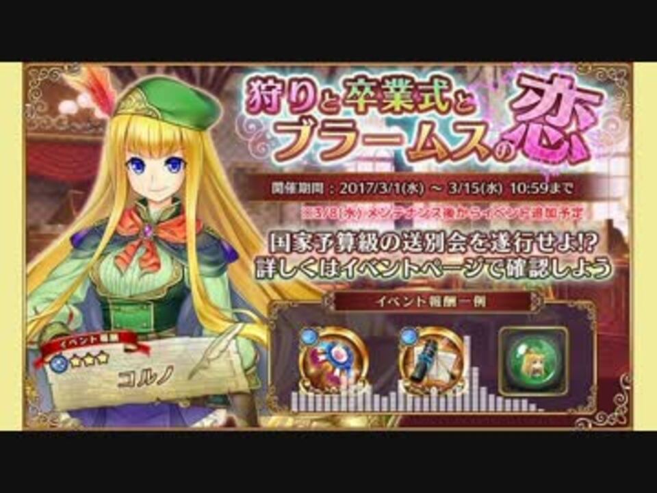 イベント「狩りと卒業式とブラームスの恋」の曲を10分強Verに。<br><br>第11回 みんなで決めるゲーム音楽ベスト100 83位<br><span style="color: #2a2a2a;">みんなで決めるゲーム音楽 2017年新曲ランキング</span> 56位<br>おめでとうございます!<br> <br>前: <a href="https://www.nicovideo.jp/watch/sm30646775" class="watch">sm30646775</a>(マイページ) ⇔ 次: <a href="https://www.nicovideo.jp/watch/sm30743468" class="watch">sm30743468</a>(レイド召喚)<br><br>ガルシンリスト:<a href="https://www.nicovideo.jp/mylist/58287975" target="_blank" rel="noopener">mylist/58287975</a><br><br>Copyright © since 1998 DMM All Rights Reserved.<br><br>◆追記<br>エイルさま、メンデルスゾーンさま、コンダクターさま、ルイーゼ・ベートーヴェンさま、<br>黒ナズナさま、フランカ・ハイドンさま、AFNさま、elevensesmasterさま、<br>E・カヴァリエーリさま、道化師ピーティさま、千狐さま、ヘンリエッタ・シュッツさま、<br>ヴァルンボンさま、ペッテさま、Charlie Brownさま、NZNさま、ヨハンナ・ブラームスさま、<br>ワーグナーさま、ゲルダ・テレマンさま、アルベルタ・コレッリさま、鹿さま、コンダクター田所さま<br>他、たくさんの広告ありがとうございます!<br><br /><strong><u>作曲者:深川翔太さんのWebサイト</u></strong><br>★wiMu | フリーBGM、無料音楽素材のダウンロード (withmusic-wimu.com)<br><a href="https://withmusic-wimu.com/" target="_blank" rel="noopener nofollow">https://withmusic-wimu.com/</a><br><br>★プロフィール | Blog など<br><a href="https://www.fukagawashota.com/" target="_blank" rel="noopener nofollow">https://www.fukagawashota.com/</a>