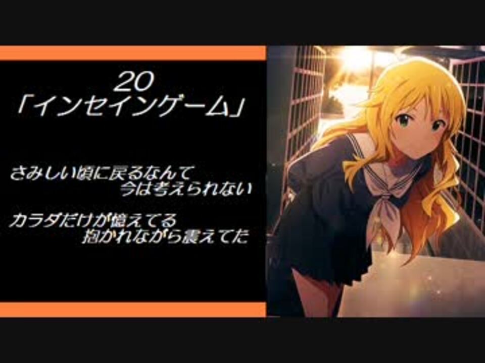 みぃつけた<br><br>※今回ミリオンだけだと曲が少ない+AS13人の出番がゼロなのでPLATINUM MASTERも混ぜてます。<br><br>収録曲:LIVE THE@TER ACTIVITIES全曲+FORWARD全曲+PLATINUM MASTER(00~03)+α<br><br>その1(PERFORMANCE)→<a href="https://www.nicovideo.jp/watch/sm23440058" class="watch">sm23440058</a><br>その2(HARMONY)→<a href="https://www.nicovideo.jp/watch/sm25879828" class="watch">sm25879828</a><br>その3(DREAMERS+α)→<a href="https://www.nicovideo.jp/watch/sm28490268" class="watch">sm28490268</a><br>その4(ACTIVITIES+FORWARD+PLATINUM MASTER+α)→ここ<br>その5(SPARKLE+GENERATION+α)→<a href="https://www.nicovideo.jp/watch/sm32996153" class="watch">sm32996153</a><br>その6(BOOST+GENERATION07~18+MASTER PRIMAL+Blooming Clover5)→<a href="https://www.nicovideo.jp/watch/sm35539063" class="watch">sm35539063</a><br><br>外伝1(SOLO COLLECTION Vol.01~03+SELECTION)→<a href="https://www.nicovideo.jp/watch/sm28562105" class="watch">sm28562105</a><br>外伝2(SOLO COLLECTION Vol.04~05+Blooming Clover1~2)→<a href="https://www.nicovideo.jp/watch/sm32787965" class="watch">sm32787965</a><br>外伝3(SOLO COLLECTION Vol.06+Blooming Clover3~4+α)→<a href="https://www.nicovideo.jp/watch/sm35002571" class="watch">sm35002571</a><br>外伝4(SOLO COLLECTION Vol.07)→<a href="https://www.nicovideo.jp/watch/sm35689812" class="watch">sm35689812</a><br><br>UPリスト<br>アイマス→<a href="https://www.nicovideo.jp/mylist/46424491" target="_blank" rel="noopener">mylist/46424491</a> ずっと春香さん→<a href="https://www.nicovideo.jp/mylist/42092783" target="_blank" rel="noopener">mylist/42092783</a> その他→<a href="https://www.nicovideo.jp/mylist/39516822" target="_blank" rel="noopener">mylist/39516822</a>