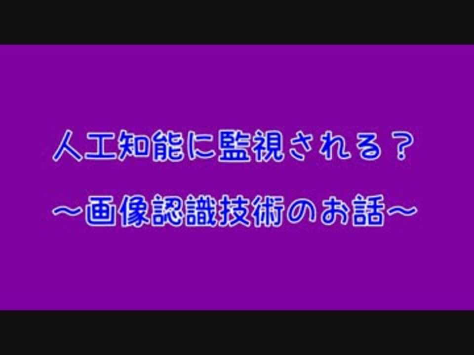 <br />現在では多くの場面で活躍するAIの画像認識技術。<br />その歴史は1960年代から始まっており、意外にも古い。<br />数々の進化を重ねてきたAI技術が何処に向かうのか大胆予想。<br /><br />皆さんにも、AI技術の現状に目を向けて未来がどうなるのか考えて頂きたい。<br /><br /><br />Google、ニューラルネットワークで写真の場所を特定する「PlaNet」を開発。人間を超える能力を発揮<br /><a href="http://japanese.engadget.com/2016/03/01/google-planet/" target="_blank" rel="noopener nofollow">http://japanese.engadget.com/2016/03/01/google-planet/</a><br /><br />※開発されても一般向けのソフトウェアにならない可能性あり。<br /><br />笑福巫女コンビ2016がお送りしました。<br /><br />マイリスト:<a href="http://www.nicovideo.jp/mylist/55553695" target="_blank" rel="noopener nofollow">http://www.nicovideo.jp/mylist/55553695</a> <br />声・編集:不屈の敗走者アヤ(Twitter:@FukutsunoAya)<br />撮影・編集:ほなちゃん(Twitter:@ho7_chan)<br />