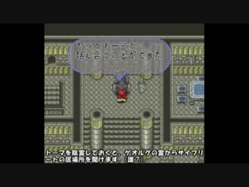 15戦目:影×2、アデプト<br>16戦目:サイフリート、影<br><br>縛り内容<br>1.最少戦闘回数の30戦でクリア(退却・敗北もNG)<br>2.メモリ破壊系バグ禁止(MCバグ、バグ皇帝、カウンターバグ、レイスフォームバグ、任意コードなど)<br>3.電源地裂撃禁止<br>4.状況再現・乱数調整禁止(コマンドキャンセル、戦闘開始時最速入力)<br><br><a href="https://www.nicovideo.jp/watch/sm30795365" class="watch">sm30795365</a>←part8|part10→<a href="https://www.nicovideo.jp/watch/sm30802302" class="watch">sm30802302</a><br>part1→<a href="https://www.nicovideo.jp/watch/sm30755997" class="watch">sm30755997</a><br><br><a href="https://www.nicovideo.jp/mylist/59171209" target="_blank" rel="noopener">mylist/59171209</a><br><br>他の挑戦シリーズとか→<a href="https://www.nicovideo.jp/mylist/3220744" target="_blank" rel="noopener">mylist/3220744</a><br><br>© 1993,2010,2016,2017 SQUARE ENIX CO., LTD. All Rights Reserved.<br>当該作品の転載・配布は禁止いたします