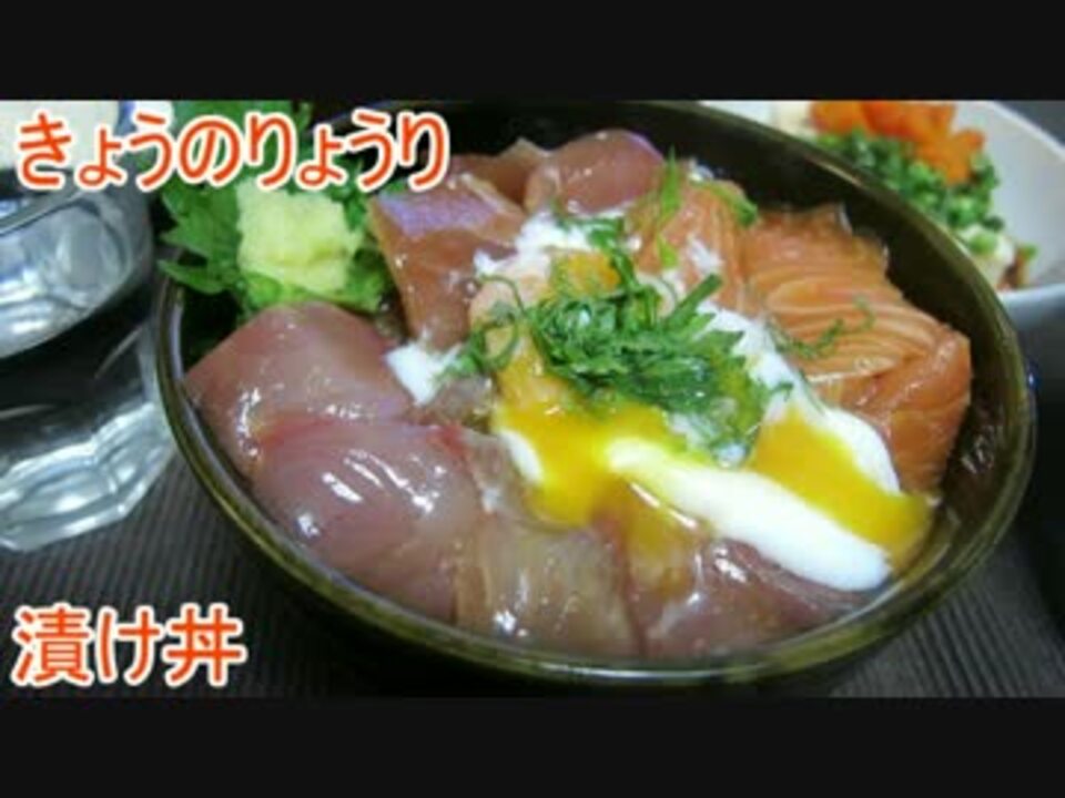 「料理を覚えたいけどレシピ見るだけじゃわからない!」という方にも作れる家庭料理の解説動画を目指してます。<br />料理って意外と簡単じゃん!と思ってもらえると嬉しいです。<br /><br />今回は漬け丼です。今回使った魚は鮭、マグロ、いなだ(ブリの子供)。<br />魚を切って漬けておくだけで、なんであんなに美味しくなるんでしょうね。<br />合わせて作った温泉卵も放置してれば出来るからおススメです。<br /><br />前回(から揚げ <a href="https://www.nicovideo.jp/watch/sm30810172" class="watch">sm30810172</a>)<br />次回(餡かけ焼きそば <a href="https://www.nicovideo.jp/watch/sm30881121" class="watch">sm30881121</a>)<br />マイリスト(<a href="https://www.nicovideo.jp/mylist/58028981" target="_blank" rel="noopener">mylist/58028981</a>) 材料等もマイリスコメに記載<br /><br />ご意見、ご要望、アドバイス等ありましたら、動画へコメントいただけると嬉しいです。<br />Twitter:@KYIWj5eppdc1o01<br />たまにコメ返しもしてます。<br /><a href="https://twitter.com/KYIWj5eppdc1o01/status/839105160609574915" target="_blank" rel="noopener nofollow">https://twitter.com/KYIWj5eppdc1o01/status/839105160609574915</a>