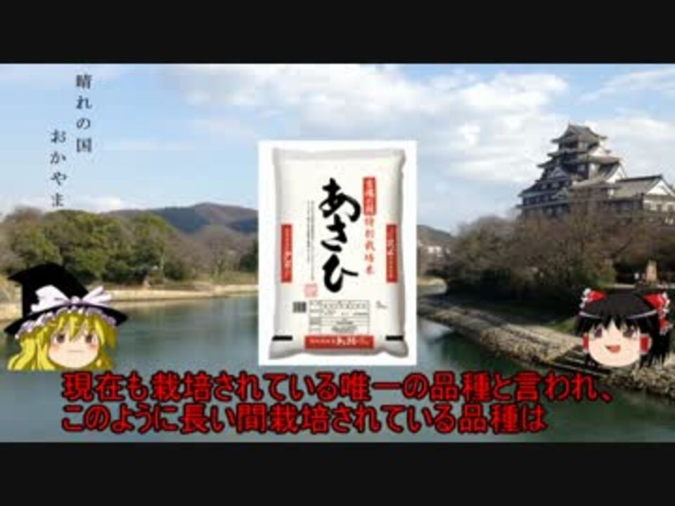 第21回は岡山県です。<br />今回は明治生まれの品種で、来歴をたどるのが面白かったです。<br />細々と作られているのではなく、今でも主要品種としての生産規模があるので、凄いお米ですね。<br /><br />前回 【<a href="https://www.nicovideo.jp/watch/sm30619957" class="watch">sm30619957</a>】 次回 【<a href="https://www.nicovideo.jp/watch/sm31294697" class="watch">sm31294697</a>】<br />本動画シリーズのpart1【<a href="https://www.nicovideo.jp/watch/sm27052524" class="watch">sm27052524</a>】<br />本動画シリーズ【<a href="https://www.nicovideo.jp/mylist/53213282" target="_blank" rel="noopener">mylist/53213282</a>】<br />前回動画を次の方々に広告頂きました。<br />ありがとうございます!宣伝やコメントは本当に励みとなります!!(2017/3/21時点)<br />かや様<br />ま゛様<br />干し柿様<br />Σ(゜□゜)様<br />トシロー様<br />なー様<br />farmer_wakaba様<br />真黒様<br />