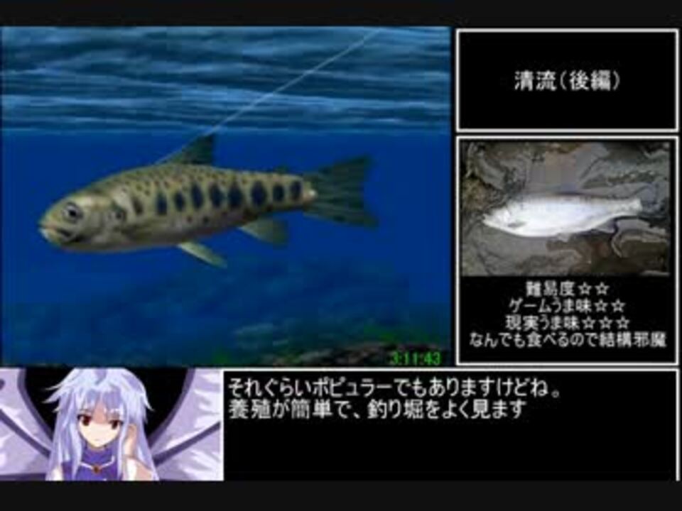 清流~沼(前半)<br />4月1日投稿予定でしたが、エイプリルフールで紛らわしいので今日全部投稿します(きまぐれ)<br />竿の選定についての質問があったのでお答えすると、単純に安く最後まで通用したからです。<br />高い竿を買おうとするとそれだけ沢山の魚を回収せねばならず、再走の際回収した魚を元に戻すのに負担がかかる為、周回がしやすい最低限の装備にしてます。完走することが大事だから(震え声)<br /><a href="https://www.nicovideo.jp/watch/sm30917489" class="watch">sm30917489</a>←前 次→<a href="https://www.nicovideo.jp/watch/sm30932165" class="watch">sm30932165</a><br />この動画のマイリス《<a href="https://www.nicovideo.jp/mylist/58515483" target="_blank" rel="noopener">mylist/58515483</a>》<br />今まで作ったの《<a href="https://www.nicovideo.jp/mylist/57577783" target="_blank" rel="noopener">mylist/57577783</a>》<br />(追記)音声ミスで1度上げ直しました。色々不手際あってセンセンシャル。<br />歌うヘッドライト兄貴、坐骨神経痛兄貴、さかな兄貴、Jaula兄貴、みたぺん兄貴、siukichi兄貴、花びら兄貴、じろう@兄貴宣伝アリガトナス!