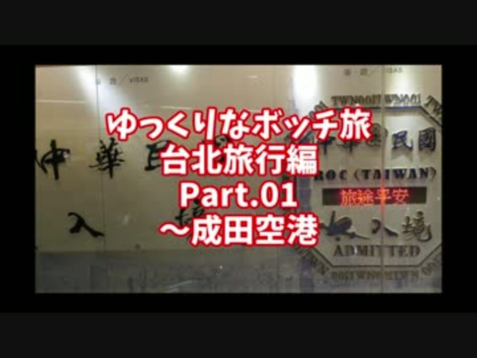 【ゆっくり】ゆっくりなボッチ旅 台北旅行編 Part.01【ボッチ】<br />~成田空港<br /><br /><br />2017年三月の三連休に台北に行ってきました。<br />まずは、成田空港までの道中になります。<br /><br />※動画中でHDR-AS300Vと記載しておりますが、HDR-AS300が正しい商品名となります。<br /><br />コメントあれば、よろしくです!<br /><br />#初の1000再生突破、皆様ご視聴ありがとうございました!<br /><br />次:<a href="https://www.nicovideo.jp/watch/sm30986402" class="watch">sm30986402</a><br />マイリスト:<a href="https://www.nicovideo.jp/mylist/58686511" target="_blank" rel="noopener">mylist/58686511</a><br /><br /><br />■動画作成■<br />ゆっくりMovie Maker3<br />AviUtl<br />x264guiEx<br />けいふぉんと<br /><br />お時間ございましたら、以下もご覧ください<br />ダイビング:<a href="https://www.nicovideo.jp/mylist/45801800" target="_blank" rel="noopener">mylist/45801800</a>