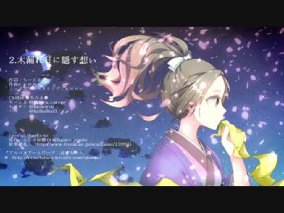 M3にて頒布予定のニューマキシシングルのトレイラー動画です。<br />2017年4月30日(日)<br />スペース:え37b サークル【たじま庵】<br /><br />【月夜に隠す想い】<br />アーティスト<br />ChiRoL✿ちろる✿ feat. TWiM.<br /><br />【収録曲】<br />✿ 月に隠す想い<br />✿ 木漏れ日に隠す想い<br />他、タイトル曲の別バージョンやオフボーカル収録、先着でChiRoL✿ちろる✿5周年記念トートバッグをプレゼント予定です。<br /><br />ChiRoL✿ちろる✿<br />ちーとる @tiitoru_curege<br />ヒロロン @hiroriron<br />ハル @halhalhal3<br /><br />TWiM.<br />Vo.龍太郎 @LALA50999<br />Gt.ぴろ @piro_yoshikage<br />Ba.うり @uri_m5c3ks2vw<br />Key.ぐんぐん @hiroriron<br /><br />Special thanks to<br />原作:ふじま@鯉心 @fujima_ponite<br />紋華繚乱:(<a href="http://www.freem.ne.jp/win/game/12993)" target="_blank" rel="noopener nofollow">http://www.freem.ne.jp/win/game/12993)</a><br />アルバムアートワーク:河東ちひろ(@chihiroixk)<br />