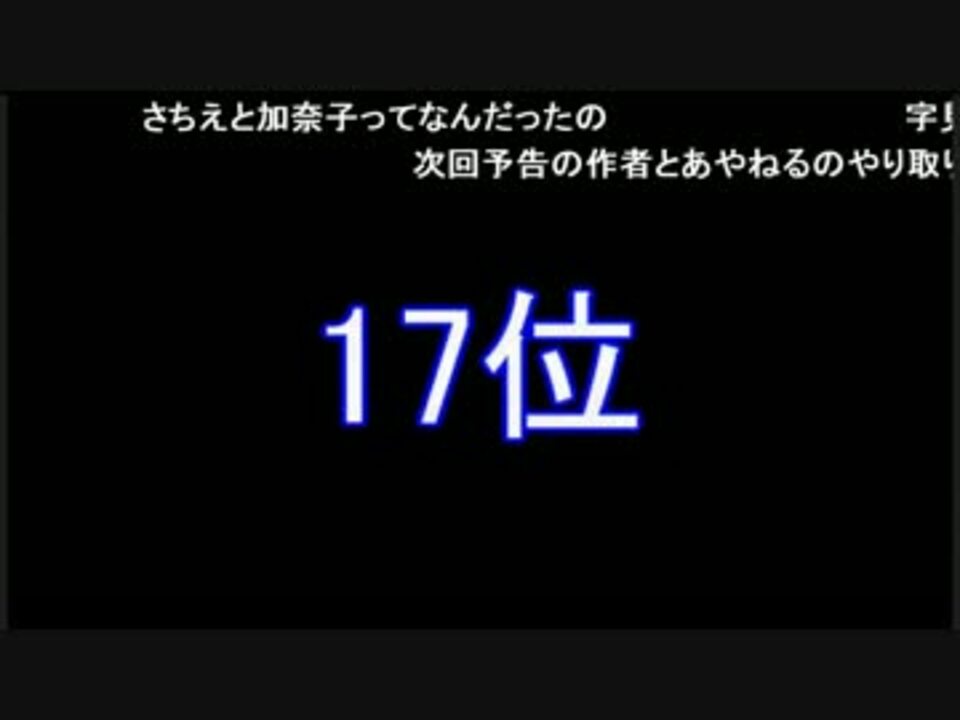 | 番号 | 総合順位 | ポイント | ジャンル順位 | カテゴリ | 再生順位 | 再生数 | コメント順位 | コメント数 | マイリスト順位 | マイリスト数 | いいね順位 | いいね数 |