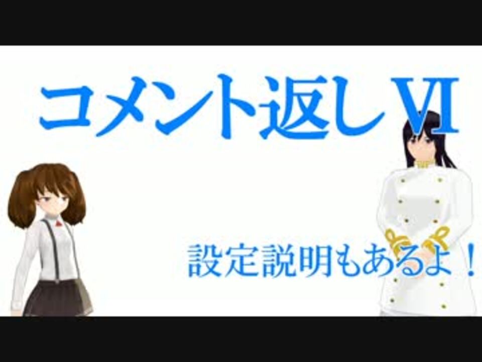 注意:今回は本編ではありません<br>作中頂いたコメントへの返信回+設定説明回となっております<br><strong>5分25秒頃まで茶番なのでコメント返信だけ見たい方はそこまで飛ばすの推奨です!<br>ガンガン進みますのでじっくり読みたい方は一時停止推奨です</strong><br><br>※第四十話に広告してくれた沢山の方へ、ありがとうございました通常動画で改めて記載します<br><br>追記:6分30秒に表示されているベルリンの赤い壁はベルリンの赤い雨の誤字です<br><br>第四十話:<a href="https://www.nicovideo.jp/watch/sm30911685" class="watch">sm30911685</a><br>コメ返回Ⅴ:<a href="https://www.nicovideo.jp/watch/sm30250745" class="watch">sm30250745</a><br>第四十一話前編:<a href="https://www.nicovideo.jp/watch/sm31101373" class="watch">sm31101373</a><br>コメ返回Ⅶ:<a href="https://www.nicovideo.jp/watch/sm31732119" class="watch">sm31732119</a><br><br>マイリスト:<a href="https://www.nicovideo.jp/mylist/49970357" target="_blank" rel="noopener">mylist/49970357</a><br><br>