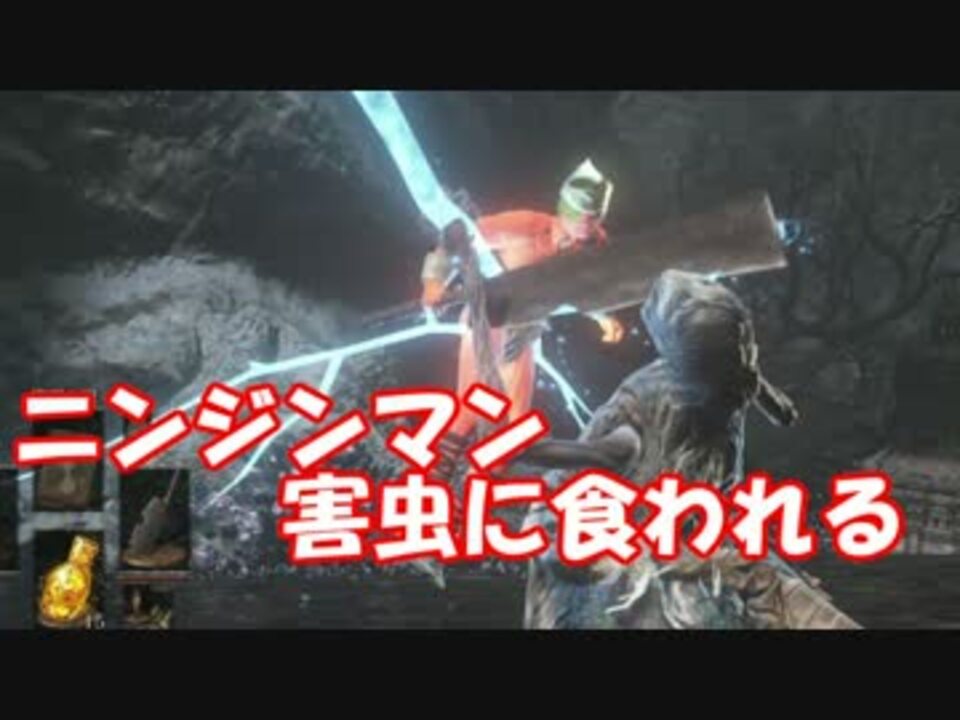 ニンジンマン、害虫に食われる悲劇<br /><a href="#" class="seekTime" data-seekTime="1:24" onclick="seekNicoPlayer('#1:24'); return false;">#1:24</a> から本編、それまで茶番。<br /><br />part1→<a href="https://www.nicovideo.jp/watch/sm30940993" class="watch">sm30940993</a> 前→<a href="https://www.nicovideo.jp/watch/sm31015009" class="watch">sm31015009</a> 次→<a href="https://www.nicovideo.jp/watch/sm31030923" class="watch">sm31030923</a><br /><br />【ダークソウル3マイリスト】<a href="https://www.nicovideo.jp/mylist/55323620" target="_blank" rel="noopener">mylist/55323620</a><br />【その他投稿作品】<a href="https://www.nicovideo.jp/mylist/34427287" target="_blank" rel="noopener">mylist/34427287</a> 【コミュ】co2035980 【Twitter】@ainosensi2<br />【チャンネル】<a href="https://ch.nicovideo.jp/ainosensi" target="_blank" rel="noopener">ch.nicovideo.jp/ainosensi</a><br />【サブアカウント】<a href="https://www.nicovideo.jp/user/52667187" target="_blank" rel="noopener">user/52667187</a>(こちらにも動画を投稿してます)