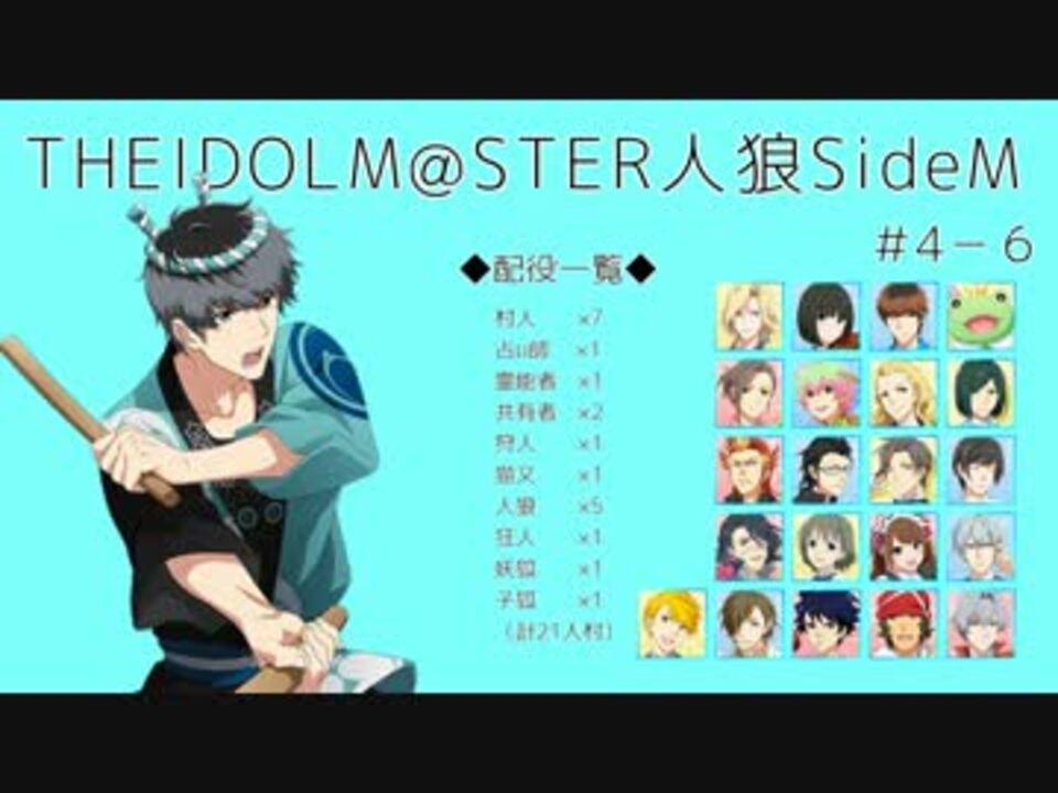 春になりました。今年は少し遠出して関西の夜桜を見て回りました。<br />今は散り気味ですが、今年の桜は意外と長く咲いていたきがします。<br />そしてスカチケで誰にするか決められません……難しい……。<br /><br /><b>【宣伝】</b><br />定期的にわかめて鯖(<a href="http://jinrou.dip.jp/~jinrou/)にてMマスRP人狼が開催されています" target="_blank" rel="noopener nofollow">http://jinrou.dip.jp/~jinrou/)にてMマスRP人狼が開催されています</a>。<br />詳細はGM(私ではなく友人です)のTwitter垢にて→@sideM_jinro_GM<br /><br />*別卓の直截的なネタバレなど、うp主判断でコメントを非表示にすることがあります。ご了承下さい。<br /><br />【前】#4-5 <a href="https://www.nicovideo.jp/watch/sm30754711" class="watch">sm30754711</a> <br />【次】#4-7 <a href="https://www.nicovideo.jp/watch/sm31746943" class="watch">sm31746943</a><br /><br />Mマス人狼動画 <a href="https://www.nicovideo.jp/mylist/50019571" target="_blank" rel="noopener">mylist/50019571</a> <br />MマスMMD動画 <a href="https://www.nicovideo.jp/mylist/47350312" target="_blank" rel="noopener">mylist/47350312</a> <br /><br />twitter→@sanagi_cocoonM