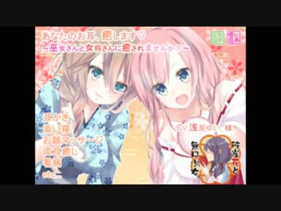 『 あなたのお耳、癒します ~巫女さんと女将さんに癒されませんか?~ 』の試聴版です。<br />本編はこちら→ <a href="http://www.dlsite.com/home/work/=/product_id/RJ198242.html/?unique_op=af" target="_blank" rel="noopener nofollow">http://www.dlsite.com/home/work/=/product_id/RJ198242.html/?unique_op=af</a><br /><br />花守もも、綾辻さんの耳かきシーンです。<br />本編よりも短めのバージョンになっています。<br /><br />CVは浅見ゆい様。<br /><br />今作は看病と義理の姉妹関係をテーマにした作品となっています。<br />二人の関係が気になる方は方は是非、本編も視聴して欲しいです!<br /><br /><br />お品書 <a href="https://www.nicovideo.jp/mylist/55935253" target="_blank" rel="noopener">mylist/55935253</a><br /><br />─┘─┘─┘─┘─┘─┘─┘─┘─┘─┘─┘─┘─┘─┘─┘─┘<br />彼岸花と無口少女。<br />販売所:<a href="http://ur0.link/u5oQ" target="_blank" rel="noopener nofollow">http://ur0.link/u5oQ</a><br />twitter:<a href="https://twitter.com/AmaryllisAyano" target="_blank" rel="noopener nofollow">https://twitter.com/AmaryllisAyano</a><br />─┘─┘─┘─┘─┘─┘─┘─┘─┘─┘─┘─┘─┘─┘─┘─┘<br />