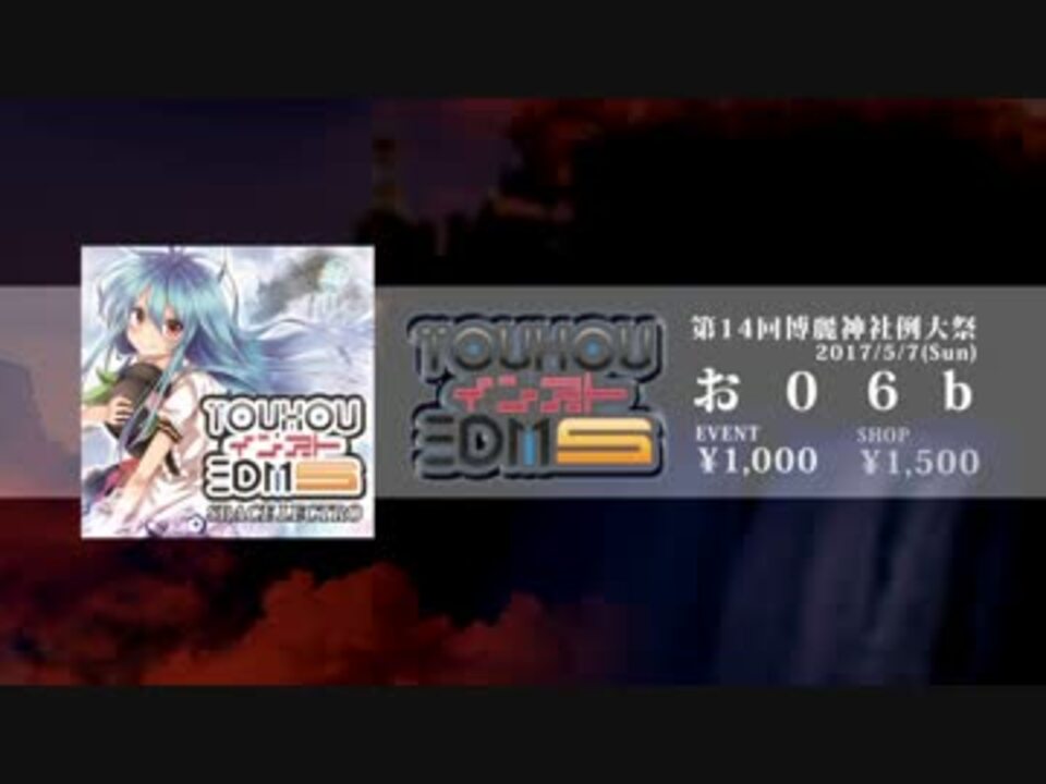 クラブシーンを賑わせている最新インストEDM第5弾! ボーカルVer.収録!<br /> アレンジャー Spacelectro Ando Ken Acro nmk ZestnicK nyankobrq Ark-Z b-UMB<br /> ボーカル れるん りあ<br /> 作詞 海兎<br /> イラスト ちくわさび ちくわさび <a href="http://www.pixiv.net/member.php?id=4447218" target="_blank" rel="noopener nofollow">http://www.pixiv.net/member.php?id=4447218</a> @chikuwa_savy<br /> デザイン 三毛や巣穴 @mikeyasuana<br /> 動画 SIGMA/ASTE <a href="https://sigmaaste.amebaownd.com/" target="_blank" rel="noopener nofollow">https://sigmaaste.amebaownd.com/</a> @sigma_asterisk<br /> プロデュース Spacelectro @Spacelectro<br /> <br /> 第14回博麗神社例大祭<br /> 2017年5月7日(日)<br /> 配置 お06b<br /> イベント価格1000円<br /> ショップ価格1500円<br /> <a href="https://www.nicovideo.jp/mylist/24829519" target="_blank" rel="noopener">mylist/24829519</a>