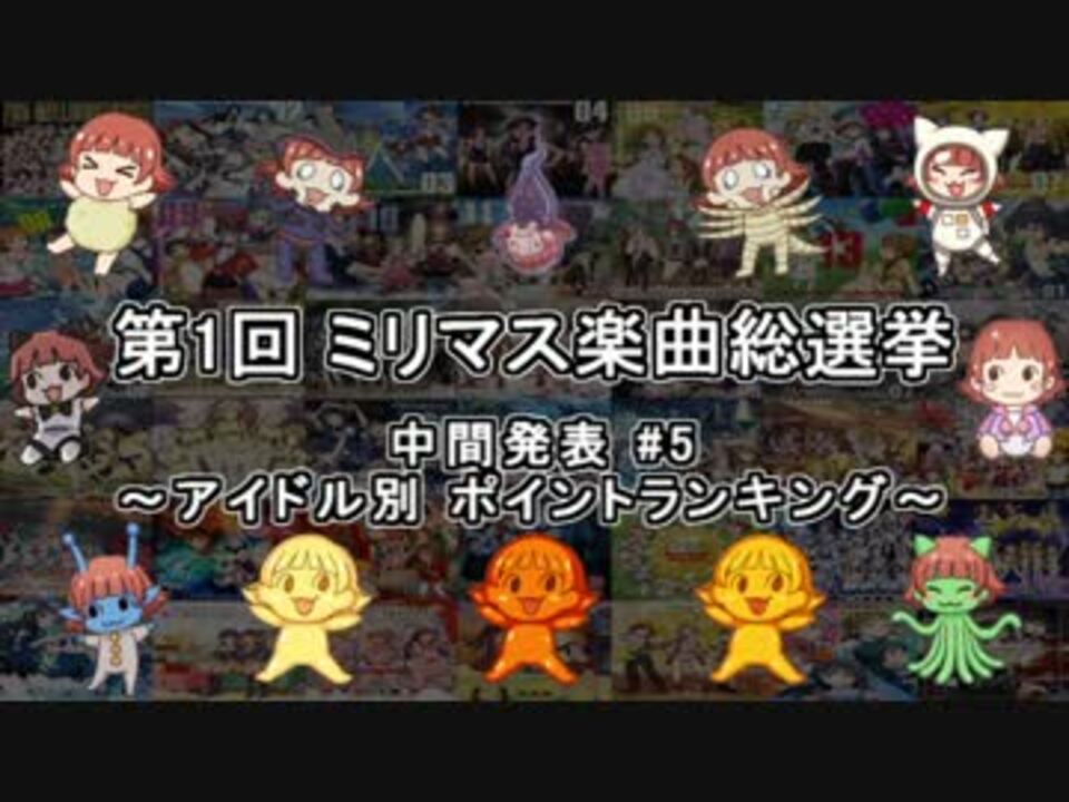 <font size="6">台湾LIVEお疲れ様でした!</font><br /><br />LTFまでのFull音源版が存在するミリマス楽曲(全181曲)に対する人気投票企画の<br />中間発表5回目です。台湾LIVE前に参加してくださった2000名の回答結果から、<br />アイドル別に集計した<font color="orange">ソロ曲合計ポイント</font>と<font color="green">ユニット曲平均ポイント</font>のBEST15<br />をご紹介します。<br /><br /><b><font color="blue">※投票対象一覧→<a href="https://ch.nicovideo.jp/article/ar1182299" target="_blank" rel="noopener">ar1182299</a></font></b><br /><br /><b>・総合結果はこちら→<a href="https://www.nicovideo.jp/watch/sm31214180" class="watch">sm31214180</a></b><br />・告知動画:<a href="https://www.nicovideo.jp/watch/sm30812422" class="watch">sm30812422</a><br />・中間発表4回目:<a href="https://www.nicovideo.jp/watch/sm31051793" class="watch">sm31051793</a><br />・『アイマス楽曲ランキングシリーズ』:<a href="https://www.nicovideo.jp/mylist/57911966" target="_blank" rel="noopener">mylist/57911966</a><br /><br />