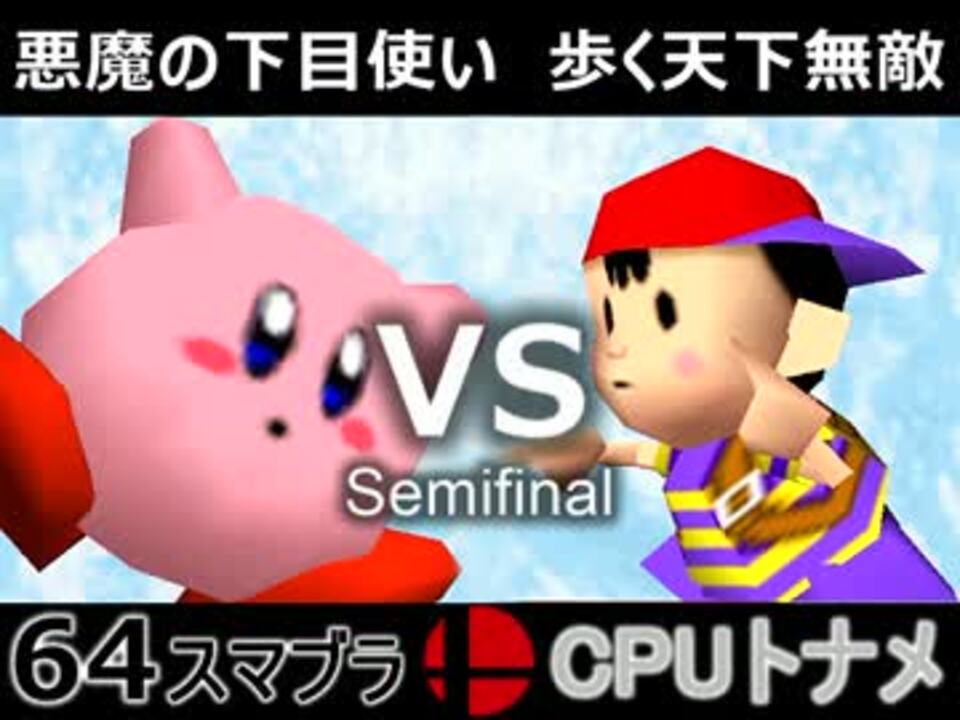 悪魔の下目使い VS 歩く天下無敵<br /><br /><b><font size="5"><font color="#ff0000">次→</font></font></b>【<a href="https://www.nicovideo.jp/watch/sm31130929" class="watch">sm31130929</a>】<br /><br />前【<a href="https://www.nicovideo.jp/watch/sm31114475" class="watch">sm31114475</a>】初戦【<a href="https://www.nicovideo.jp/watch/sm31072246" class="watch">sm31072246</a>】<br />第一回大会【<a href="https://www.nicovideo.jp/watch/sm23906204" class="watch">sm23906204</a>】<br />64スマブラリスト【<a href="https://www.nicovideo.jp/mylist/27365529" target="_blank" rel="noopener">mylist/27365529</a>】<br />その他シリーズ【<a href="https://www.nicovideo.jp/mylist/12965027" target="_blank" rel="noopener">mylist/12965027</a>】<br /><br /><b><font color="#00bfff">Twitter</font></b>【@niconicopppppp】<br /><b><font color="#ff0000">チャンネル</font></b>【<a href="https://ch.nicovideo.jp/p-desu" target="_blank" rel="noopener">ch.nicovideo.jp/p-desu</a>】<br /><b>コミュニティ</b>【co17681】