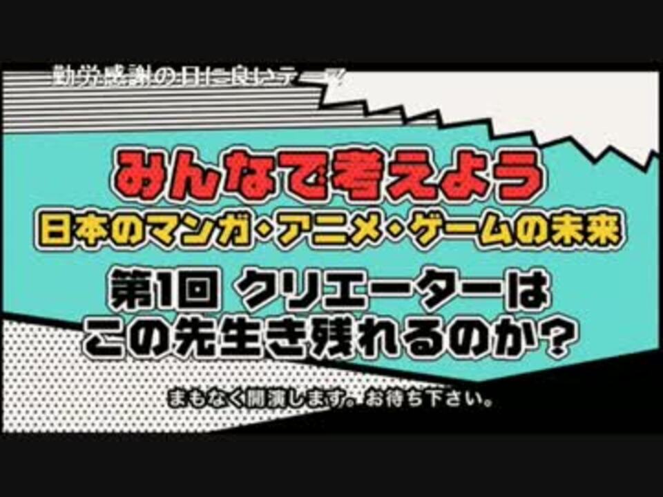 第2回→<a href="https://www.nicovideo.jp/watch/sm31158790" class="watch">sm31158790</a> 最終回→<a href="https://www.nicovideo.jp/watch/sm31165872" class="watch">sm31165872</a><b><br />「アニオタで圧力団体を作ればいい」 政治はアニメ業界の危機を解決できるのか<b><br />参考URL:<a href="http://originalnews.nico/4787" target="_blank" rel="noopener nofollow">http://originalnews.nico/4787</a><b><br />みんなで考えよう 日本のマンガ・アニメ・ゲームの未来 ~第1回 クリエーターはこの先生き残れるのか?~ - 2016-11-23<b><br />本放送→<a href="https://live.nicovideo.jp/watch/lv281972575" target="_blank" rel="noopener">lv281972575</a><b><br />吉田尚記(ニッポン放送アナウンサー・司会)<b><br />宇野常寛(評論家、「PLANETS」編集長)<b><br /><ゲスト><b><br />古屋圭司自民党衆議院議員(MANGA議員連盟事務局長)<b><br />赤池誠章自民党参議院議員(MANGA議員連盟幹事)<b><br />大坪英之(一般社団法人 日本アニメーター・演出協会事務局長)<b><br /></b></b></b></b></b></b></b></b></b></b></b>