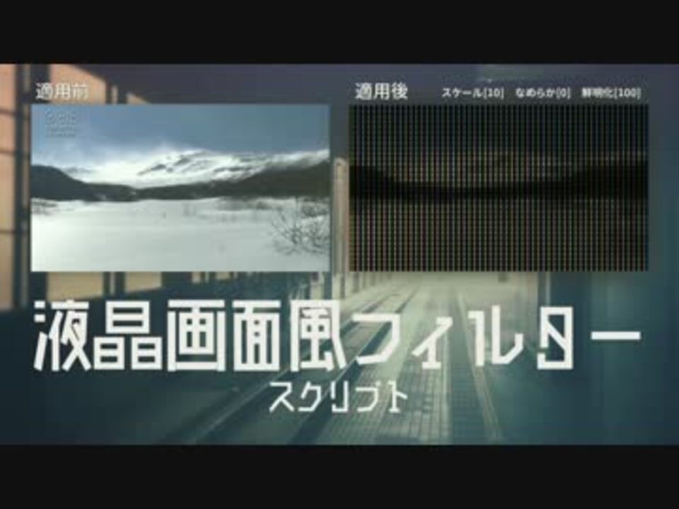多分手軽に液晶表現ができるようになりました。<br />パリピな感じにできる?かもしれません。<br />いつもタイトルに使っているフォントは「廻想体 マキナB」です。<br />「晶」が無くて別のフォントを使ったのは内緒です。<br /><br /><font color="#4f4b44" size="+1"><b>DL</b></font><br /><font color="#36707f"><a href="https://www.dropbox.com/s/gj3jlv2mqtn0xnl/MG_MonitorMosaic.zip" target="_blank" rel="noopener nofollow">https://www.dropbox.com/s/gj3jlv2mqtn0xnl/MG_MonitorMosaic.zip</a></font><br />音楽 : ペイメント(inst ver.)/Heavenzさん [<a href="https://www.nicovideo.jp/watch/sm24664145" class="watch">sm24664145</a>]<br />雪山の動画 : NHKクリエイティブ・ライブラリー<br /><br /><br /><br />□■ 毎回配布ありがとうございます!さん 宣伝ありがとうございます!■□