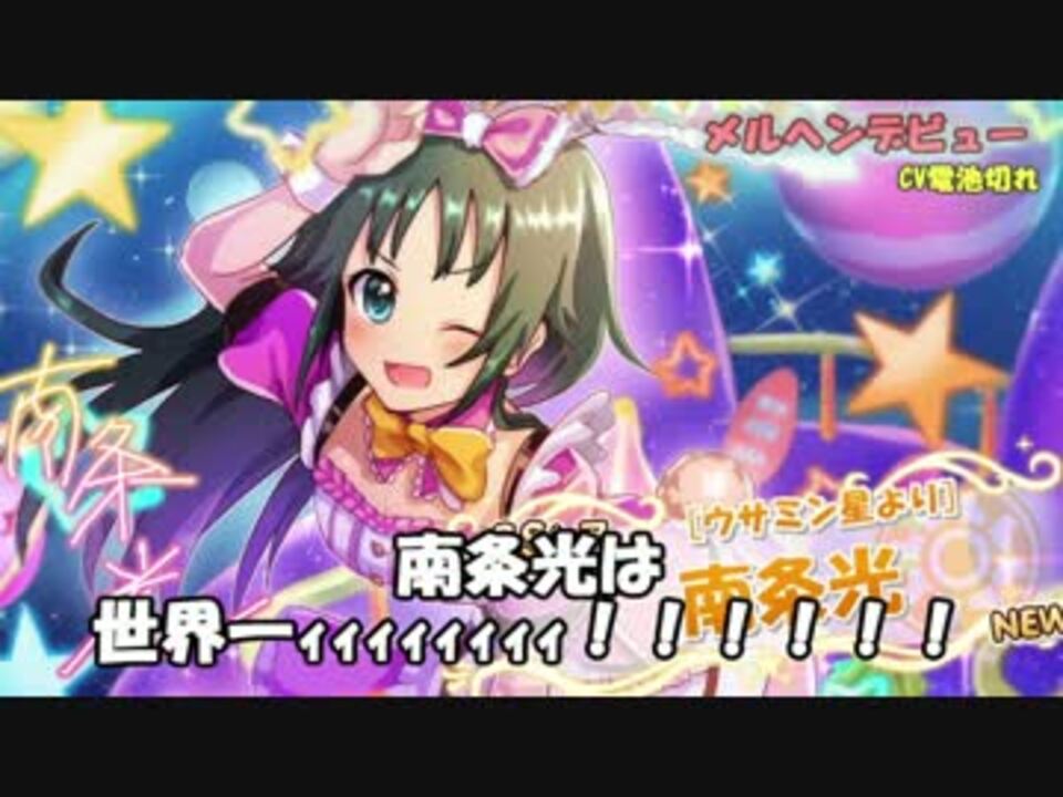初めまして、南条光の担当をさせて頂いております、電池切れと申します。<br />今回はうちの南条の素晴らしさをより多くの人に知って頂くべく、<br /><font size="6">私自身が広告塔となり</font><br />安部菜々様の「メルヘンデビュー!」を歌ってみる事にしました。<br />何卒、うちの南条をよろしくお願いします。<br /><br /><br />ツアーOP動画→<a href="https://www.nicovideo.jp/watch/sm31242272" class="watch">sm31242272</a><br />デレマス歌ってみたツアーの動画マイリストはこちらから→<a href="https://www.nicovideo.jp/mylist/54601782" target="_blank" rel="noopener">mylist/54601782</a><br />SpecialThanks→taiga&ツアー参加歌い手の皆様<br /><br />素敵すぎるSSR南条のイラストは三菜いりと様@mitunairito<br />電池切れ<a href="https://www.nicovideo.jp/mylist/39403548" target="_blank" rel="noopener">mylist/39403548</a> @dentigire0325<br />直近のおすすめ シャルル→<a href="https://www.nicovideo.jp/watch/sm31112301" class="watch">sm31112301</a><br />