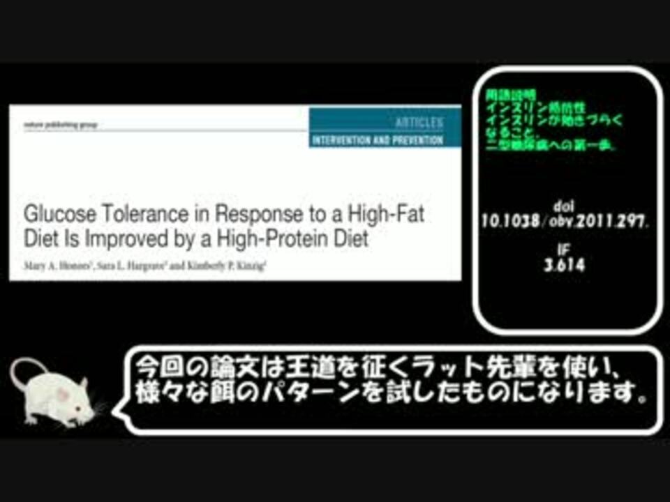糖質7割でもカロリー下げれば割といい線いくんやなって・・・<br />動画中一部ガバがあり、訂正動画を作りました。<br />Part7(ガバ訂正)→<a href="https://www.nicovideo.jp/watch/sm31542739" class="watch">sm31542739</a><br />広告誠にアリシャス!<br />2017年6/3,4,5,6,7,8,12,14,29<br /><br />Part3→<a href="https://www.nicovideo.jp/watch/sm31256372" class="watch">sm31256372</a><br />Part5→<a href="https://www.nicovideo.jp/watch/sm31420667" class="watch">sm31420667</a><br /><br />これまで作ったもの<br /><a href="https://www.nicovideo.jp/mylist/55689059" target="_blank" rel="noopener">mylist/55689059</a><br />低糖質ダイエットマイリスト<br /><a href="https://www.nicovideo.jp/mylist/58868486" target="_blank" rel="noopener">mylist/58868486</a><br /><br />ご意見、ご感想、ご要望などはこちらへ<br /><a href="https://twitter.com/lifesch_doc_P" target="_blank" rel="noopener nofollow">https://twitter.com/lifesch_doc_P</a><br /><br />お借りしたイラスト<br />© 2016 DBCLS 統合TV, licensed under Creative Commons Attribution 4.0 International license (CC-BY-4.0)<br /><a href="http://www.ac-illust.com/" target="_blank" rel="noopener nofollow">http://www.ac-illust.com/</a><br />お借りしたBGM<br /><a href="https://dova-s.jp/bgm/play4484.html" target="_blank" rel="noopener nofollow">https://dova-s.jp/bgm/play4484.html</a><br />引用論文doi<br />10.1038/oby.2011.297