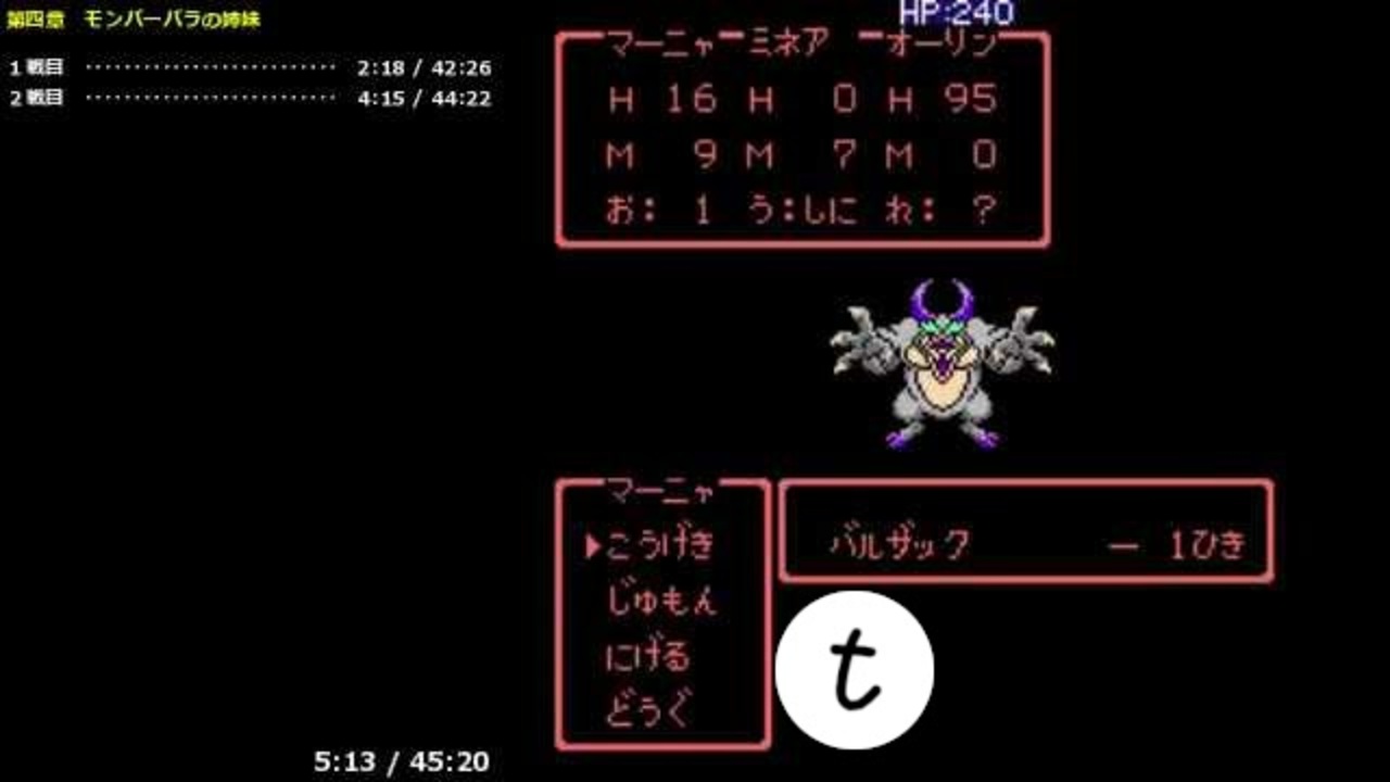 <span style="color: #ff0000;"><strong>※ 2021/07 追記</strong></span><strong> もう10秒ほど(第四章を)更新しました。→ <a href="https://www.nicovideo.jp/watch/sm38957432" class="watch">sm38957432</a></strong><br><br><br>FC [NES] ドラゴンクエスト4 (ドラクエ4, DQ4) 導かれし者たち のTASの試走です。<br><br>いつもながら <a href="https://www.nicovideo.jp/watch/sm6305143" class="watch">sm6305143</a>(現行TAS, narimasa氏, 2009/03)の見様見真似です。<br>少し手順を変更したため、この章は上記の現行TASより10秒ほど(目分量)遅れました。<br>ハバリアに着くまでは7秒ほど(目分量)早いようです。<br><br> フレーム数[総] : 32181F [176862F]<br><br><a href="https://www.nicovideo.jp/watch/sm31141134" class="watch">sm31141134</a> 3/7 第三章<br><a href="https://www.nicovideo.jp/watch/sm31672434" class="watch">sm31672434</a> 5/7 第五章 1/3<br><br><span style="color: #45818e; font-size: 10px;">この動画で利用している株式会社スクウェア・エニックスを代表とする共同著作者が権利を所有する著作物及びスギヤマ工房有限会社が権利を所有する楽曲の転載・配布は禁止いたします。<br> © 1990 ARMOR PROJECT/BIRD STUDIO/SPIKE CHUNSOFT/SQUARE ENIX All Rights Reserved.<br> © SUGIYAMA KOBO</span><br /><br>------------- 以下 共通説明文 -------------<br><br><strong>PIXIV FANBOX や Amazon にて支援を募っています。よかったらぜひ。<br>FANBOX : <a href="https://www.fanbox.cc/@tas-suki" target="_blank" rel="noopener nofollow">https://www.fanbox.cc/@tas-suki</a><br>Wish List : <a href="https://www.amazon.co.jp/hz/wishlist/ls/3M57V3BKOO1N9" target="_blank" rel="noopener nofollow">https://www.amazon.co.jp/hz/wishlist/ls/3M57V3BKOO1N9</a></strong><br><br><strong>twitter : <a href="https://twitter.com/tas_suki" target="_blank" rel="noopener nofollow">https://twitter.com/tas_suki</a><br>RTA : <a href="https://www.speedrun.com/user/tas_suki" target="_blank" rel="noopener nofollow">https://www.speedrun.com/user/tas_suki</a></strong><br><br><span style="color: #20124d;"><strong>※ 2021/10 以降は、不定期に動画を投稿しています。</strong></span><br><br> ・Posted TASes (recently)<br>05/31 <a href="https://www.nicovideo.jp/watch/sm42293404" class="watch">sm42293404</a> (PC)<br>04/30 <a href="https://www.nicovideo.jp/watch/sm42136556" class="watch">sm42136556</a> (PC)<br>02/28 <a href="https://www.nicovideo.jp/watch/sm41812217" class="watch">sm41812217</a> (MD)<br>12/25 <a href="https://www.nicovideo.jp/watch/sm41553821" class="watch">sm41553821</a> (PC)<br>11/08 <a href="https://www.youtube.com/watch?v=Lj6N0bm3lyo" target="_blank" rel="noopener nofollow">https://www.youtube.com/watch?v=Lj6N0bm3lyo</a> (PC)<br>09/29 <a href="https://www.youtube.com/watch?v=gRelRaVcyQg" target="_blank" rel="noopener nofollow">https://www.youtube.com/watch?v=gRelRaVcyQg</a> (PC)<br>07/01 <a href="https://www.youtube.com/watch?v=28G366IdmPE" target="_blank" rel="noopener nofollow">https://www.youtube.com/watch?v=28G366IdmPE</a> (PC)<br>05/31 <a href="https://www.nicovideo.jp/watch/sm40538452" class="watch">sm40538452</a> (PC)<br><br> ・Posted TASes (2016/04 ~ )<br><a href="http://www.nicovideo.jp/user/56935712/video" target="_blank" rel="noopener nofollow">http://www.nicovideo.jp/user/56935712/video</a><br><br> ・Posted TASes that are the current fastest records<br><a href="https://www.nicovideo.jp/series/74250" target="_blank" rel="noopener nofollow">https://www.nicovideo.jp/series/74250</a>