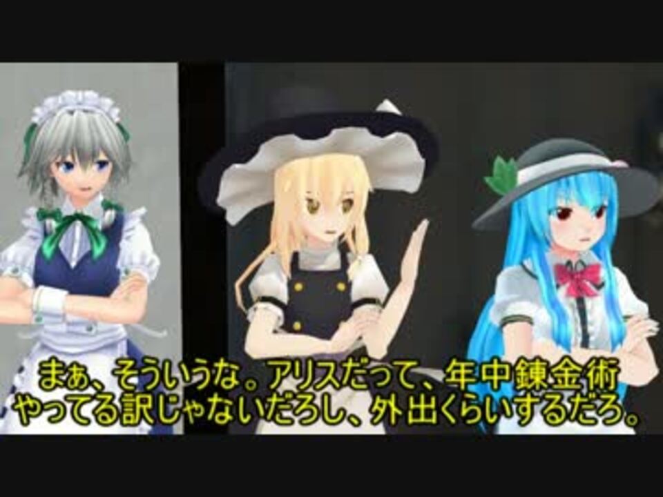 (父の日)初投稿です。健全な動画だよ。<br />アリスの胸が見たかったから、この動画再生したの!→<a href="https://twitter.com/dddd2_" target="_blank" rel="noopener nofollow">https://twitter.com/dddd2_</a><br />【登場人物】<br />魔理沙・アリス:にがもん様<br />ルイズ:アールビット様/紫いかソーメンP様<br />夢子:キングM様<br />咲夜:アールビット様<br />射命丸:min様<br />はたて:つみだんご様<br />永琳:モンテコア様/ 葡萄P (quinsiene)様/ ガンプラP様/逆輸入P様/ アールビット様/ 暁朱 (あしゅ)様<br />さとり:にがもん様/くびれづた様/しえら様/かんな様<br />レミリア・メディスン:すけ様<br />天子・早苗:Kanata様<br />幽香:モンテコア様/ぷれでたぁ様/ min.様<br />チルノ:ゆきはね様<br />大妖精:えと様<br />座標軸<br />魔理沙エンド<a href="https://www.nicovideo.jp/watch/sm31371896" class="watch">sm31371896</a> ニコ童祭<a href="https://www.nicovideo.jp/watch/sm31446002" class="watch">sm31446002</a><br />クリスマス<a href="https://www.nicovideo.jp/watch/sm30284407" class="watch">sm30284407</a> 母の日<a href="https://www.nicovideo.jp/watch/sm31208747" class="watch">sm31208747</a><br />アトリエマイリス<a href="https://www.nicovideo.jp/mylist/57615793" target="_blank" rel="noopener">mylist/57615793</a>