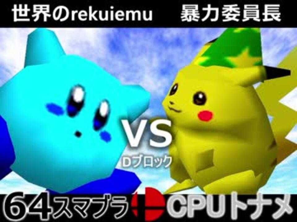 油断は禁物の玉筋<br /><br />歩く天下無敵(NE) VS エロい姉(SA)<br />世界のrekuiemu(KI) VS 暴力委員長(PI)<br /><br /><b><font size="5"><font color="#ff0000">次→</font></font></b>【<a href="https://www.nicovideo.jp/watch/sm31427948" class="watch">sm31427948</a>】<br /><br />前【<a href="https://www.nicovideo.jp/watch/sm31415439" class="watch">sm31415439</a>】初戦【<a href="https://www.nicovideo.jp/watch/sm31228643" class="watch">sm31228643</a>】<br />第二回大会【<a href="https://www.nicovideo.jp/watch/sm31072246" class="watch">sm31072246</a>】<br />第一回大会【<a href="https://www.nicovideo.jp/watch/sm23906204" class="watch">sm23906204</a>】<br />64スマブラリスト【<a href="https://www.nicovideo.jp/mylist/27365529" target="_blank" rel="noopener">mylist/27365529</a>】<br />その他シリーズ【<a href="https://www.nicovideo.jp/mylist/12965027" target="_blank" rel="noopener">mylist/12965027</a>】<br /><br /><b><font color="#00bfff">Twitter</font></b>【@niconicopppppp】<br /><b><font color="#ff4500">チャンネル</font></b>【<a href="https://ch.nicovideo.jp/p-desu" target="_blank" rel="noopener">ch.nicovideo.jp/p-desu</a>】
