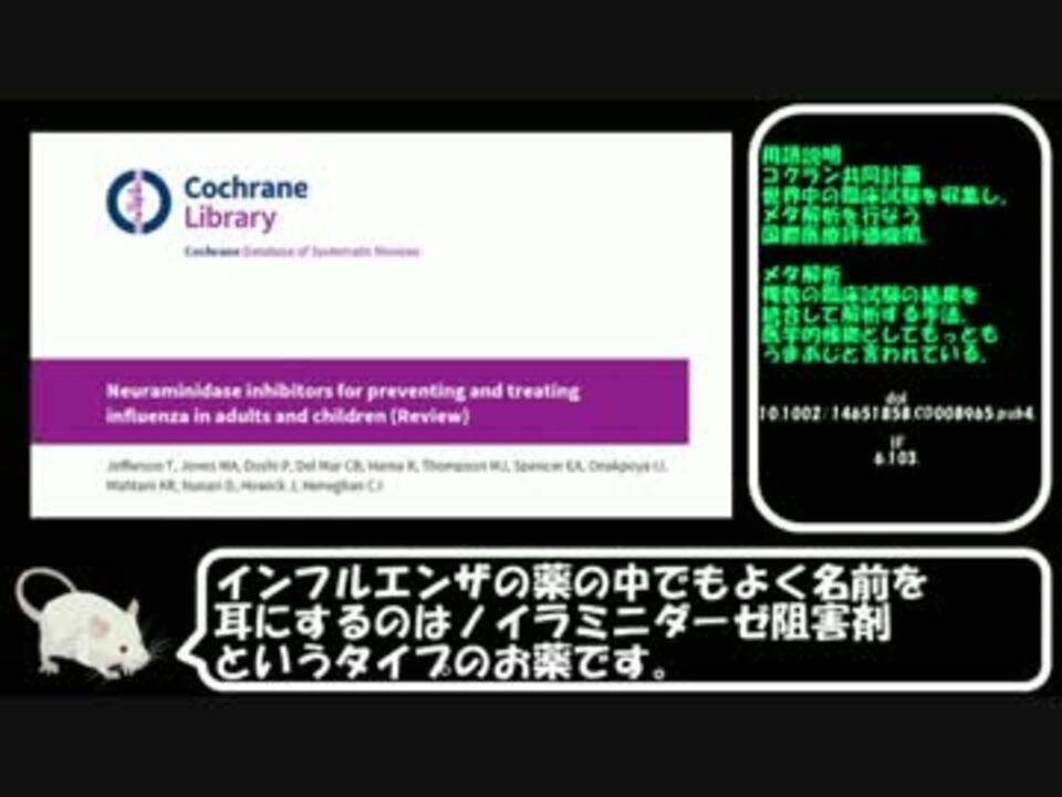 闇深すぎィ!<br />広告誠にアリシャス!<br />2017年7/4,5,7,10,15,30<br />2018年2/19<br /><br />これまで作ったもの<br /><a href="https://www.nicovideo.jp/mylist/55689059" target="_blank" rel="noopener">mylist/55689059</a><br /><br />ご意見、ご感想、ご要望などはこちらへ<br /><a href="https://twitter.com/lifesch_doc_P" target="_blank" rel="noopener nofollow">https://twitter.com/lifesch_doc_P</a><br /><br />お借りしたイラスト<br />© 2016 DBCLS 統合TV, licensed under Creative Commons Attribution 4.0 International license (CC-BY-4.0)<br /><a href="http://www.ac-illust.com/" target="_blank" rel="noopener nofollow">http://www.ac-illust.com/</a><br />お借りしたBGM<br /><a href="https://dova-s.jp/bgm/play4484.html" target="_blank" rel="noopener nofollow">https://dova-s.jp/bgm/play4484.html</a><br />引用論部doi<br />10.1002/14651858.CD008965.pub4.