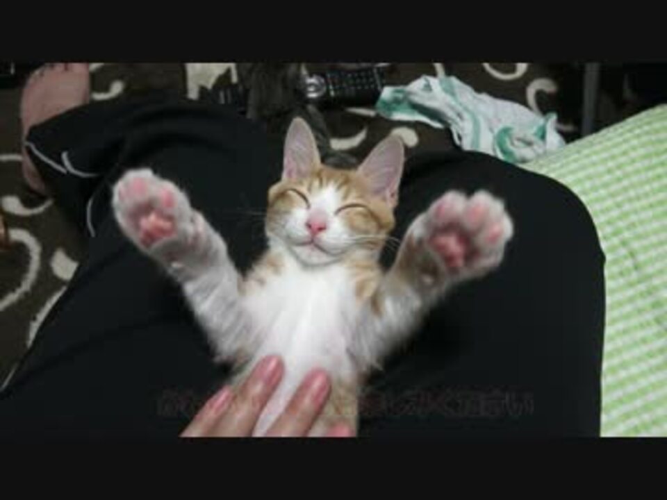 お膝で寝落ちた子猫を愛でる動画 1:19