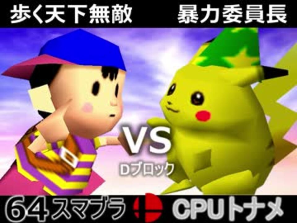 頭に何入ってんの<br /><br />歩く天下無敵(NE) VS 暴力委員長(PI)<br />世界のrekuiemu(KI) VS エロい姉(SA)<br /><br /><b><font size="5"><font color="#ff0000">次→</font></font></b>【<a href="https://www.nicovideo.jp/watch/sm31525575" class="watch">sm31525575</a>】<br /><br />前【<a href="https://www.nicovideo.jp/watch/sm31516560" class="watch">sm31516560</a>】初戦【<a href="https://www.nicovideo.jp/watch/sm31228643" class="watch">sm31228643</a>】<br />第二回大会【<a href="https://www.nicovideo.jp/watch/sm31072246" class="watch">sm31072246</a>】<br />第一回大会【<a href="https://www.nicovideo.jp/watch/sm23906204" class="watch">sm23906204</a>】<br />64スマブラリスト【<a href="https://www.nicovideo.jp/mylist/27365529" target="_blank" rel="noopener">mylist/27365529</a>】<br />その他シリーズ【<a href="https://www.nicovideo.jp/mylist/12965027" target="_blank" rel="noopener">mylist/12965027</a>】<br /><br /><b><font color="#00bfff">Twitter</font></b>【@niconicopppppp】<br /><b><font color="#ff4500">チャンネル</font></b>【<a href="https://ch.nicovideo.jp/p-desu" target="_blank" rel="noopener">ch.nicovideo.jp/p-desu</a>】