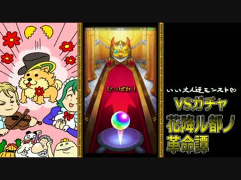 いい大人達が「モンスターストライク」のガチャイベント<br /> 「花降ル都ノ革命譚」を本気で遊んでみました。<br /> 本人達は至って本気でプレイしておりますが、腕前の方はお察し下さい。<br /> <br /> <br /> 登場人物:イラスト参照!<br /> <br /> (ご注意!)タイチョーが絶叫している箇所が多々あります。<br /> <br /> いい大人達チャンネルはこちらから⇒<a href="https://ch.nicovideo.jp/channel/ch2598414" target="_blank" rel="noopener">ch2598414</a><br /> <br /> 前→<a href="https://www.nicovideo.jp/watch/sm31513906" class="watch">sm31513906</a> 次→<a href="https://www.nicovideo.jp/watch/sm31536552" class="watch">sm31536552</a> これまでの実況→<a href="https://www.nicovideo.jp/mylist/17828031" target="_blank" rel="noopener">mylist/17828031</a> ラジオ→<a href="https://www.nicovideo.jp/mylist/28752088" target="_blank" rel="noopener">mylist/28752088</a>