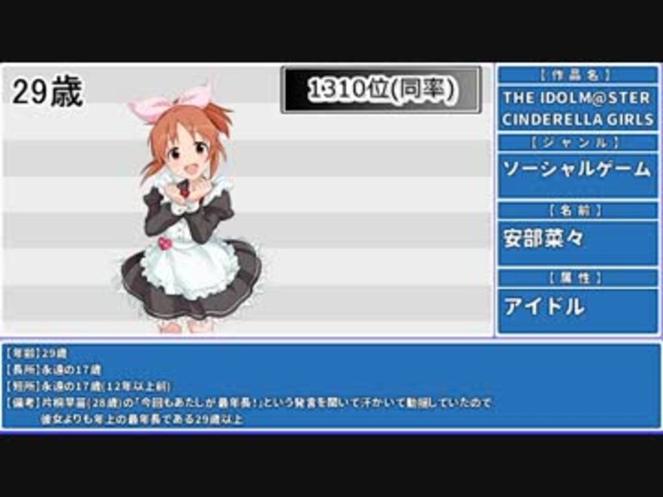 | 番号 | 総合順位 | ポイント | ジャンル順位 | カテゴリ | 再生順位 | 再生数 | コメント順位 | コメント数 | マイリスト順位 | マイリスト数 | いいね順位 | いいね数 |