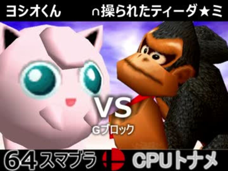 ヨシオくんが・・・・・・・・・・<br /><br />ヨシオくん(PU) VS ∩操られたティーダ★ミ(DK)<br />天空の虫使いアントン(YO) VS 幼き弟のソーセージ(KI)<br /><br /><b><font size="5"><font color="#ff0000">次→</font></font></b>【<a href="https://www.nicovideo.jp/watch/sm31546939" class="watch">sm31546939</a>】<br /><br />前【<a href="https://www.nicovideo.jp/watch/sm31525619" class="watch">sm31525619</a>】初戦【<a href="https://www.nicovideo.jp/watch/sm31228643" class="watch">sm31228643</a>】<br />第二回大会【<a href="https://www.nicovideo.jp/watch/sm31072246" class="watch">sm31072246</a>】<br />第一回大会【<a href="https://www.nicovideo.jp/watch/sm23906204" class="watch">sm23906204</a>】<br />64スマブラリスト【<a href="https://www.nicovideo.jp/mylist/27365529" target="_blank" rel="noopener">mylist/27365529</a>】<br />その他シリーズ【<a href="https://www.nicovideo.jp/mylist/12965027" target="_blank" rel="noopener">mylist/12965027</a>】<br /><br /><b><font color="#00bfff">Twitter</font></b>【@niconicopppppp】<br /><b><font color="#ff4500">チャンネル</font></b>【<a href="https://ch.nicovideo.jp/p-desu" target="_blank" rel="noopener">ch.nicovideo.jp/p-desu</a>】