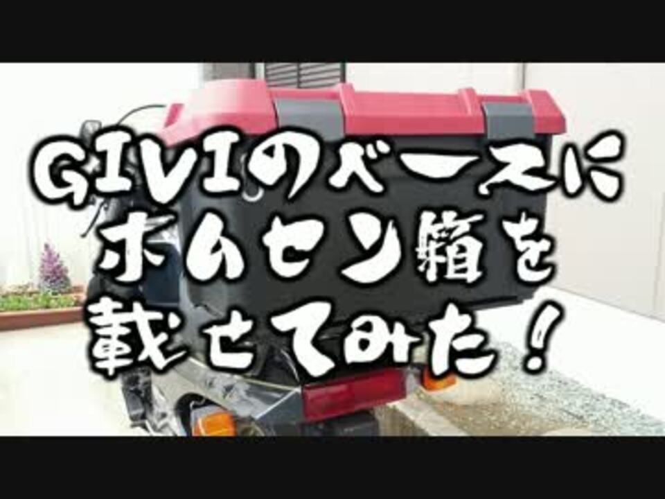 GIVIのベースを付けたままトップケースとホムセン箱をうまく使い分けたい!<br>加工は最小限にしたい!<br>同じ様な事を考えてらっしゃる方はたくさんいるんですね。<br><br><a href="https://blogs.yahoo.co.jp/osakenomitaizo/25062670.html" target="_blank" rel="noopener nofollow">https://blogs.yahoo.co.jp/osakenomitaizo/25062670.html</a><br>↑コチラのブログを参考にさせていただき、ホムセン箱を載せるアダプター(?)的な板を作りました。<br><br>ついでにこの板をテーブル代わりにできるように追加工作。<br><br>あまり参考にはならないでしょうが、よろしかったらご覧ください!<br><br>うp主の他のグダグダ動画 → <a href="https://www.nicovideo.jp/mylist/38144362" target="_blank" rel="noopener">mylist/38144362</a><br><span style="color: #1b95e0; font-size: 16px;">PartⅡ → <a href="https://www.nicovideo.jp/watch/sm34744465" class="watch">sm34744465</a></span>
