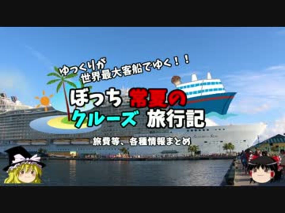 全75話でお送りしたクルーズ旅行記の、<br />エンディングと一言コメント、費用総額のまとめです。<br />使用曲はメロディーが好きなだけで、<br />内容は全く知らないんだからね!<br /><br />第一話→<a href="https://www.nicovideo.jp/watch/sm29940078" class="watch">sm29940078</a><br /><br />第1章・・・出発編<br />第2章・・・キーウエスト編<br />第3章・・・クルーズ前編<br />第4章・・・クルーズ後編<br />第5章・・・FLD編<br />第6章・・・帰路編<font color="red">←今ココ</font><br /><br /><font color="red">コミュ→co2910020</font><br />twitter→@ryontan<br /><br /><a href="https://www.nicovideo.jp/watch/sm31604812" class="watch">sm31604812</a>←前回 <font color="red">次回 車中泊旅行 広島編→<a href="https://www.nicovideo.jp/watch/sm31658362" class="watch">sm31658362</a></font><br />次回 イギリス・タイ旅行記→<a href="https://www.nicovideo.jp/watch/sm32025927" class="watch">sm32025927</a><br /><br />今作 クルーズ旅行記→<a href="https://www.nicovideo.jp/mylist/57397685" target="_blank" rel="noopener">mylist/57397685</a><br />今作 車中泊旅行記→<a href="https://www.nicovideo.jp/mylist/54706524" target="_blank" rel="noopener">mylist/54706524</a><br />前作 ドイツ周遊記→<a href="https://www.nicovideo.jp/mylist/54938346" target="_blank" rel="noopener">mylist/54938346</a><br />前々作 北海道旅行記→<a href="https://www.nicovideo.jp/mylist/52618057" target="_blank" rel="noopener">mylist/52618057</a><br />