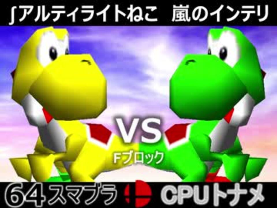 平成の名勝負<br /><br /><u>※どちらが勝つかアンケ結果(Twitter調べ)</u><br />∫アルティライトねこ(YO)79% VS 嵐のインテリ(YO)21%<br /><br /><b><font size="5"><font color="#ff0000">次→</font></font></b>【<a href="https://www.nicovideo.jp/watch/sm31613030" class="watch">sm31613030</a>】<br /><br />前【<a href="https://www.nicovideo.jp/watch/sm31602580" class="watch">sm31602580</a>】初戦【<a href="https://www.nicovideo.jp/watch/sm31228643" class="watch">sm31228643</a>】<br />第二回大会【<a href="https://www.nicovideo.jp/watch/sm31072246" class="watch">sm31072246</a>】<br />第一回大会【<a href="https://www.nicovideo.jp/watch/sm23906204" class="watch">sm23906204</a>】<br />64スマブラリスト【<a href="https://www.nicovideo.jp/mylist/27365529" target="_blank" rel="noopener">mylist/27365529</a>】<br />その他シリーズ【<a href="https://www.nicovideo.jp/mylist/12965027" target="_blank" rel="noopener">mylist/12965027</a>】<br /><br /><b><font color="#00bfff">Twitter</font></b>【@niconicopppppp】<br /><b><font color="#ff4500">チャンネル</font></b>【<a href="https://ch.nicovideo.jp/p-desu" target="_blank" rel="noopener">ch.nicovideo.jp/p-desu</a>】