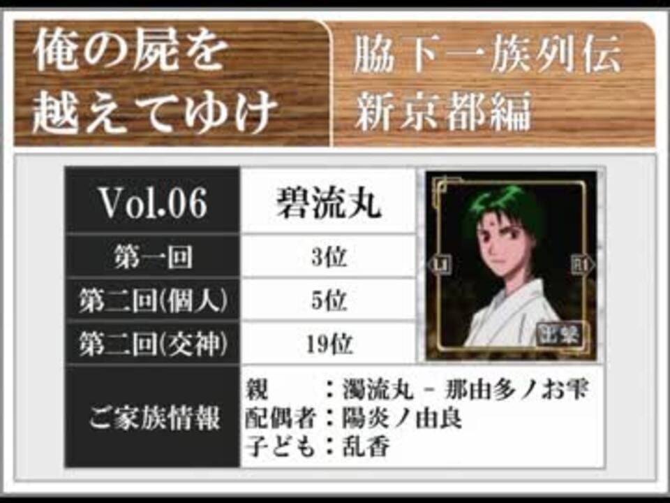 <b>うちの一族の話を聞いてくれ</b><br /><b>※一族1人1人について、ただ語っていくだけの動画です</b><br /><br />6回目は碧流丸様です。<br /><br />《明美ちゃん出没注意》<br /><br />※新京都編通してですが、静画に投稿されたデータ系静画を非常に参考にさせていただいています。<br />欲しいなと思う情報が全て揃っているので、本当に助かります。<br />どうもありがとうございます。<br /><br />vol.5 : 薫子様 ⇒<a href="https://www.nicovideo.jp/watch/sm31659681" class="watch">sm31659681</a><br />vol.7 : 清香っち ⇒<a href="https://www.nicovideo.jp/watch/sm31778758" class="watch">sm31778758</a><br /><br />マイリスト⇒<a href="https://www.nicovideo.jp/mylist/45061999" target="_blank" rel="noopener">mylist/45061999</a><br />