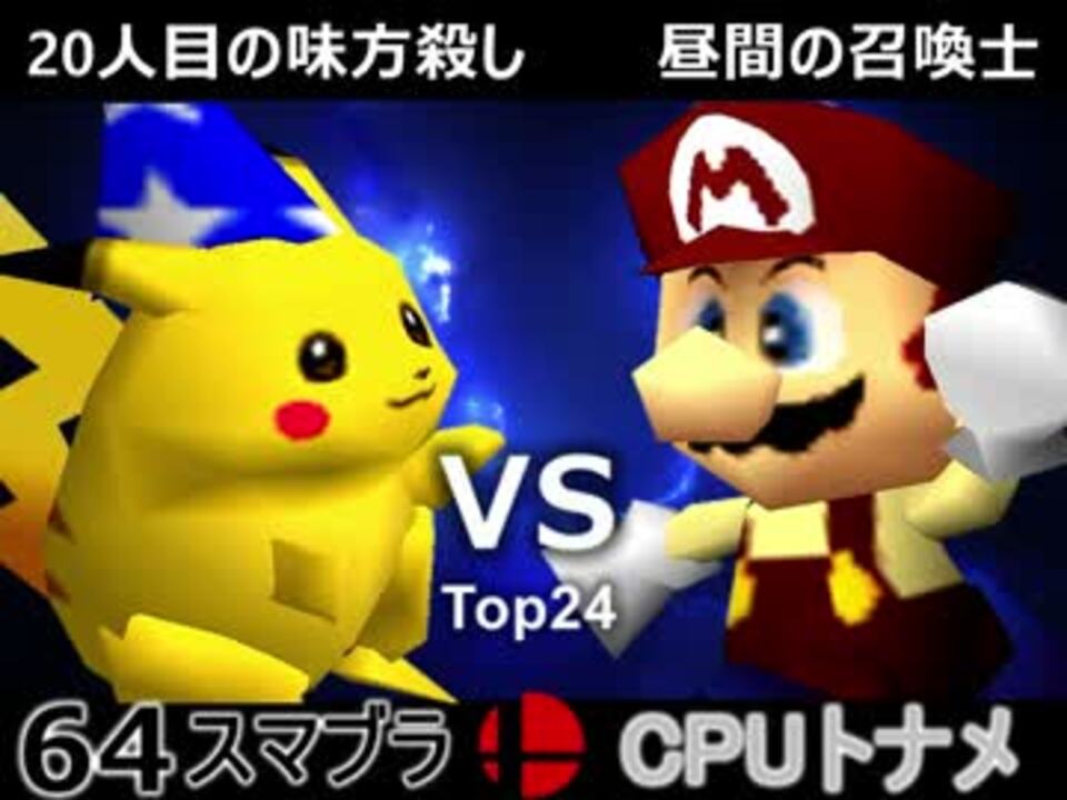 <u>※どちらが勝つかアンケ結果(Twitter調べ)</u><br />20人目の味方殺し(PI)58% VS 昼間の召喚士(MA)42%<br /><br /><b><font size="5"><font color="#ff0000">次→</font></font></b>【<a href="https://www.nicovideo.jp/watch/sm31705647" class="watch">sm31705647</a>】<br /><br />前【<a href="https://www.nicovideo.jp/watch/sm31698691" class="watch">sm31698691</a>】決勝トナメ一回戦【<a href="https://www.nicovideo.jp/watch/sm31692278" class="watch">sm31692278</a>】予選初戦【<a href="https://www.nicovideo.jp/watch/sm31228643" class="watch">sm31228643</a>】<br />第二回大会【<a href="https://www.nicovideo.jp/watch/sm31072246" class="watch">sm31072246</a>】<br />第一回大会【<a href="https://www.nicovideo.jp/watch/sm23906204" class="watch">sm23906204</a>】<br />64スマブラリスト【<a href="https://www.nicovideo.jp/mylist/27365529" target="_blank" rel="noopener">mylist/27365529</a>】<br />その他シリーズ【<a href="https://www.nicovideo.jp/mylist/12965027" target="_blank" rel="noopener">mylist/12965027</a>】<br /><br /><b><font color="#00bfff">Twitter</font></b>【@niconicopppppp】<br /><b><font color="#ff4500">チャンネル</font></b>【<a href="https://ch.nicovideo.jp/p-desu" target="_blank" rel="noopener">ch.nicovideo.jp/p-desu</a>】