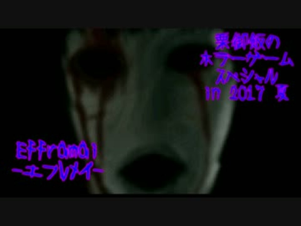 <b>Efframai</b><br />巷で有名な恐怖のお化け屋敷へ行くぜ<br />お化け屋敷なんで死ぬとかそういうのはないけど、ただひたすら怖いもう怖い<br /><br />Efframai→<a href="https://www.freem.ne.jp/win/game/5937" target="_blank" rel="noopener nofollow">https://www.freem.ne.jp/win/game/5937</a><br />Efframai2→<a href="http://www.freem.ne.jp/win/game/12659" target="_blank" rel="noopener nofollow">http://www.freem.ne.jp/win/game/12659</a><br /><br />高画質版:<a href="https://youtu.be/WbH6PBFPIis" target="_blank" rel="noopener nofollow">https://youtu.be/WbH6PBFPIis</a><br /><br />SMD Industrial Waste→<a href="https://www.nicovideo.jp/watch/sm31749979" class="watch">sm31749979</a> N.F.→<a href="https://www.nicovideo.jp/watch/sm31766314" class="watch">sm31766314</a><br />栗御飯のホラーゲームスペシャル in 2017:<a href="https://www.nicovideo.jp/mylist/59710006" target="_blank" rel="noopener">mylist/59710006</a><br /> 栗御飯の実況:<a href="https://www.nicovideo.jp/mylist/35346348" target="_blank" rel="noopener">mylist/35346348</a><br />Twitterアカウント:@kurigohangar