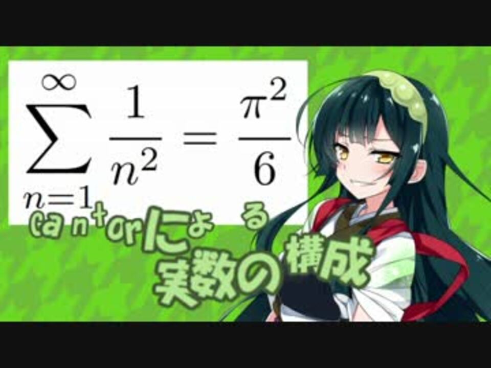 最初は高校生向けのつもりだったのに、いつの間にやら難易度が指数関数的に上昇してしまった。<br />一応ひじき祭期間なのでタグ付けしますが、いつも通りの内容です。<br />ミスがあれば報告していただけると助かります。<br />のりフェスの参加も考えましたが、この動画は明らかに一般向けの解説ではないので、参加しません。<br />東北ずん子の数学教室シリーズ→ <a href="https://www.nicovideo.jp/mylist/59261153" target="_blank" rel="noopener">mylist/59261153</a><br /><br />追記:アンケの結果、次回はLebesgue積分とRiemann積分の話にします。