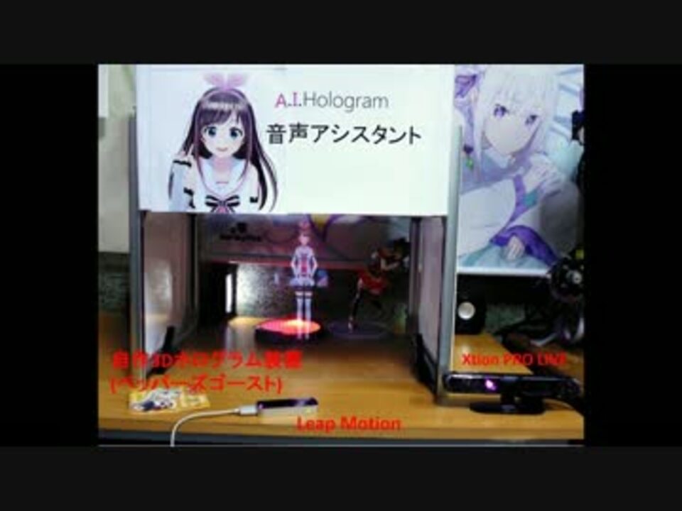 音声認識A.Iちゃん アシスタント-俺の嫁召喚装置<br />GateBoxが欲しかったんですキャラクターをホログラムに投映する、<br />これは非公式の動画<br />ペッパーズ・ゴーストを活用した立体投影、<br />MMDAgentとXtion、Leap Motion による音声・動作認識と、数々の試みを達成してきた。<br />四年前の プロジェクト -超能力で霊夢のスカートをめくってみた!! (<a href="https://www.nicovideo.jp/watch/sm20032246" class="watch">sm20032246</a>)<br /><font><a href="http://nlab.itmedia.co.jp/nl/articles/1302/12/news095.html" target="_blank" rel="noopener nofollow">http://nlab.itmedia.co.jp/nl/articles/1302/12/news095.html</a><br />最新作は、AIちゃんと一緒に、魔法使いの人生に迎えろ!<br /><br />Youtube HD<br /><a href="https://youtu.be/uFzWXvJGsLM" target="_blank" rel="noopener nofollow">https://youtu.be/uFzWXvJGsLM</a><br />翻訳: Yamatoさん <br /></font>