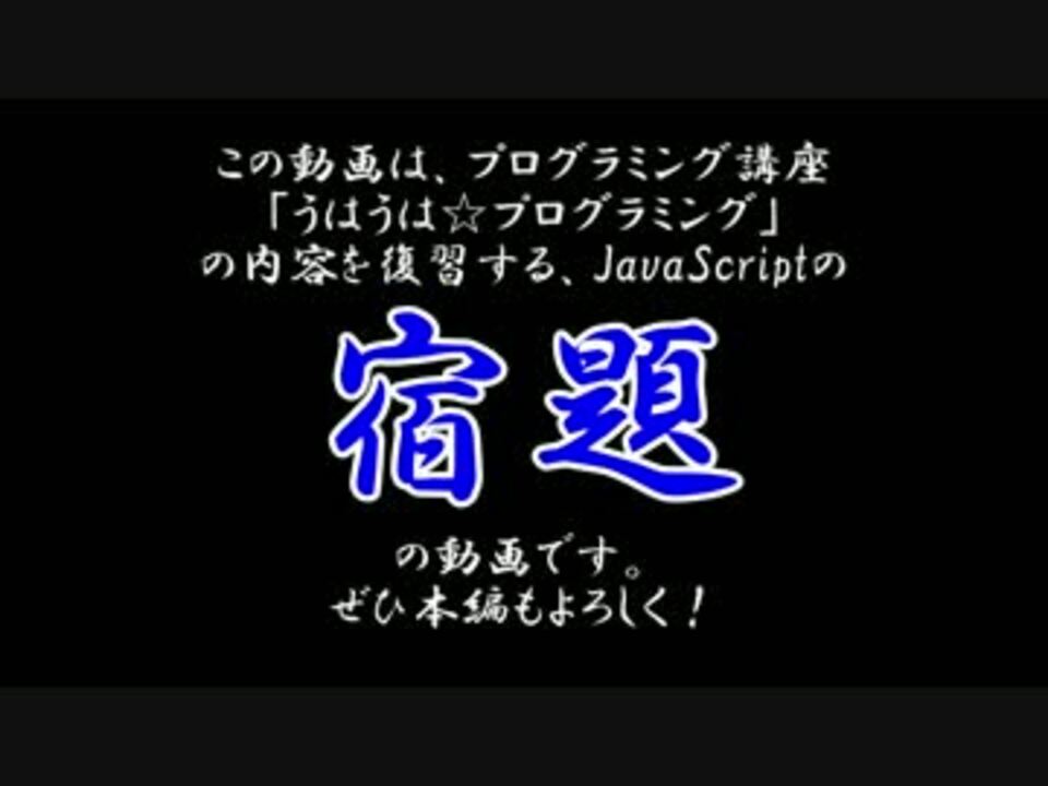 札束の風呂に入ってウハウハになりたい素人に、プログラミングを教えます!<br />という講座の宿題です。<br /><br />講師:Revin <a href="https://twitter.com/rev84" target="_blank" rel="noopener nofollow">https://twitter.com/rev84</a><br />生徒:やられ <a href="https://twitter.com/yanao331" target="_blank" rel="noopener nofollow">https://twitter.com/yanao331</a><br /><br />YouTube:<a href="https://goo.gl/FjZ6ui" target="_blank" rel="noopener nofollow">https://goo.gl/FjZ6ui</a><br />教材:<a href="https://github.com/rev84/uhauha_programming" target="_blank" rel="noopener nofollow">https://github.com/rev84/uhauha_programming</a><br />本編マイリスト:<a href="https://www.nicovideo.jp/mylist/59061583" target="_blank" rel="noopener">mylist/59061583</a><br />宿題マイリスト:<a href="https://www.nicovideo.jp/mylist/59781918" target="_blank" rel="noopener">mylist/59781918</a><br />次:<a href="https://www.nicovideo.jp/watch/sm31811001" class="watch">sm31811001</a>