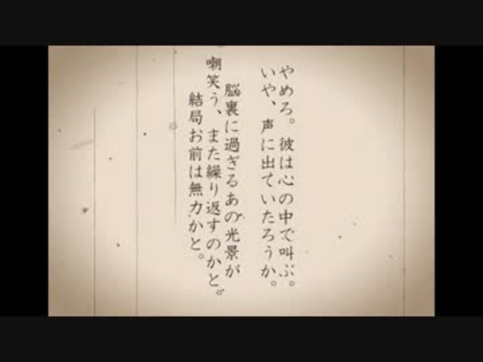 <font color="red">影法師の街 第三話</font><br /><br /><font size="6">夏休みの宿題と動画制作は計画的に。</font><br />遅れて本当にすみません…!<br /><br />やっぱりEDの文章考えるのとコメ返するのは楽しい。ひたすらそればかりやっていたい。<br />再生の際音量調節をお願いします。どうでもいいことですが今日は掛け軸家父の誕生日でした。<br /><br />気が向いた時におまけ的な短編やハウスルールの備忘録してるブログ <a href="http://szkw102212.blog.fc2.com/?cr=ht0ot3fdmblnimhhk3ngussrj4" target="_blank" rel="noopener nofollow">http://szkw102212.blog.fc2.com/?cr=ht0ot3fdmblnimhhk3ngussrj4</a><br /><a href="https://www.nicovideo.jp/watch/sm31729757" class="watch">sm31729757</a> ←前 <a href="https://www.nicovideo.jp/mylist/57349639" target="_blank" rel="noopener">mylist/57349639</a> 次→ <a href="https://www.nicovideo.jp/watch/sm32353261" class="watch">sm32353261</a> <br />10/17追記 うわぁぁああ飛行機乗ってたら全然更新できませんでしたぁぁああああ!!!これから頑張ります!頑張りますので!!すみません!!!