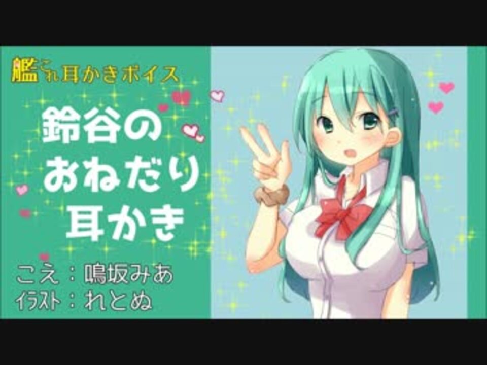 艦これ耳かきボイスを制作しました。<br />初回は鈴谷ちゃんです。<br />二次創作ですので、実際の声とイラストは異なります、ご了承ください。<br />コメントどしどしよろしくお願いします。<br /><br />■鈴谷の特徴<br />・身長 200m<br />・体重 12000t<br />・趣味 T督いじり、お買い物、熊野とデート<br />・特技 やっぱカラオケっしょ~<br /><br />耳かき音・生活音ご協力: kyoho ASMR様<br /><a href="https://www.youtube.com/c/kyohoASMR" target="_blank" rel="noopener nofollow">https://www.youtube.com/c/kyohoASMR</a><br /><br />声: 鳴坂みあ様<br /><a href="https://twitter.com/narusaka_mia" target="_blank" rel="noopener nofollow">https://twitter.com/narusaka_mia</a><br /><br />イラスト: れとぬ様<br /><a href="https://pixiv.me/sirokuma1000" target="_blank" rel="noopener nofollow">https://pixiv.me/sirokuma1000</a><br /><br /><br />YouTube版はこちら→ <a href="https://youtu.be/TSEoqnOLgpw" target="_blank" rel="noopener nofollow">https://youtu.be/TSEoqnOLgpw</a><br /><br />マイリスト<br />耳かきボイス 二次創作 <a href="https://www.nicovideo.jp/mylist/60179431" target="_blank" rel="noopener">mylist/60179431</a><br /><br />