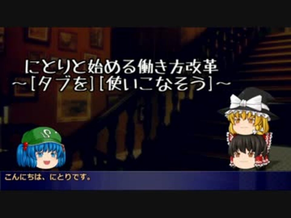 第4回はタブ系ソフトの紹介です。<br /><br />Firefox:<a href="https://www.mozilla.org/ja/firefox/" target="_blank" rel="noopener nofollow">https://www.mozilla.org/ja/firefox/</a> <br />Chrome:<a href="https://www.google.co.jp/chrome/browser/desktop/index.html" target="_blank" rel="noopener nofollow">https://www.google.co.jp/chrome/browser/desktop/index.html</a> <br />Qtabbar:<a href="http://qttabbar-ja.wikidot.com/" target="_blank" rel="noopener nofollow">http://qttabbar-ja.wikidot.com/</a> <br />Office Tab:<a href="http://www.extendoffice.com/japanese/office-tabs.html" target="_blank" rel="noopener nofollow">http://www.extendoffice.com/japanese/office-tabs.html</a> <br />PDF X-change Editor:<a href="https://www.tracker-software.com/product/pdf-xchange-editor" target="_blank" rel="noopener nofollow">https://www.tracker-software.com/product/pdf-xchange-editor</a> <br /><br />前:<a href="https://www.nicovideo.jp/watch/sm31811678" class="watch">sm31811678</a> <br />次:まだ <br /><br /> ささらとリトライ基礎英語:<a href="https://www.nicovideo.jp/mylist/59836440" target="_blank" rel="noopener">mylist/59836440</a> <br />にとりと始める働き方改革:<a href="https://www.nicovideo.jp/mylist/59693506" target="_blank" rel="noopener">mylist/59693506</a> <br /><br /><br />asdfasdfさん、広告ありがとうございました!