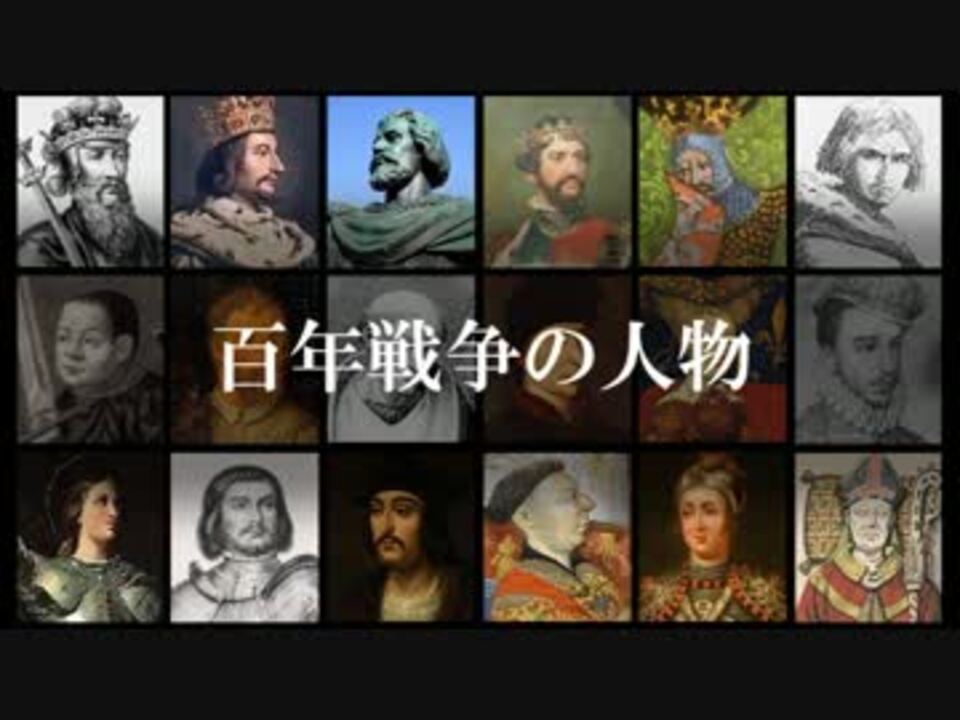 英仏百年戦争の時代の人物を並べました。<br />基本的に広く浅くの人物紹介を目指してます。<br />過去の動画と重複している人物もいます。<br /><br />エドワード3世/シャルル5世/アルテフェルデ/エドワード黒太子/ヨハン・フォン・ルクセンブルク/エティエンヌ・マルセル/ベルトラン・デュ・ゲクラン/ワット・タイラー/ボーフォート枢機卿/ジャン無怖公/王妃イザボー/ボードリクール/ジャンヌ・ダルク/ジル・ド・レ/ラ・イール/ベッドフォード公ジョン/ジョン・タルボット/ピエール・コーション<br /><br />マイリスト <a href="https://www.nicovideo.jp/mylist/58413091" target="_blank" rel="noopener">mylist/58413091</a><br /><br />世界の飛行家:<a href="https://www.nicovideo.jp/watch/sm31785646" class="watch">sm31785646</a><br />古今東西の暗殺者:<a href="https://www.nicovideo.jp/watch/sm31830760" class="watch">sm31830760</a><br />ローマの敵対者:<a href="https://www.nicovideo.jp/watch/sm31743819" class="watch">sm31743819</a><br />歴代イギリス(イングランド)君主 その1:<a href="https://www.nicovideo.jp/watch/sm31575940" class="watch">sm31575940</a><br />歴代フランス君主 その1:<a href="https://www.nicovideo.jp/watch/sm31019922" class="watch">sm31019922</a>