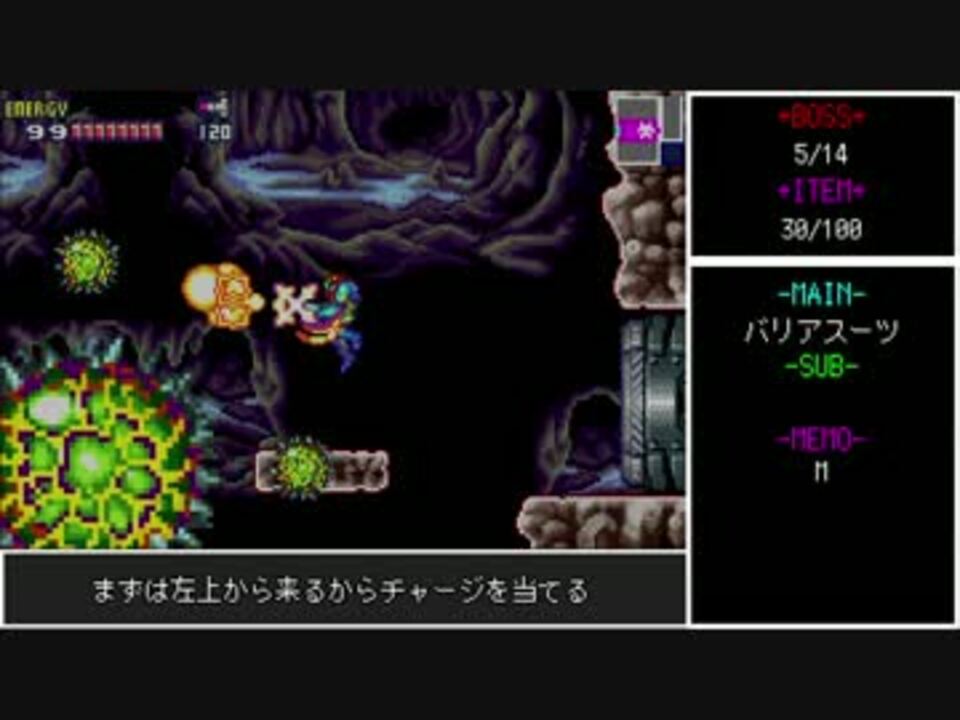 サムスリターンズ発売おめでとう!<br><br>ちなみにこのシリーズ、下のプレイ条件に書いてない縛りが1つあります。<br>既プレイの方は推理しながら見るのも面白いんじゃないすかね(最終回で発表)<br><br>プレイ条件<br>①ノーダメージ(ラスボス戦のイベントは除く)<br>②100%(アイテムフルコンプ)<br>③2時間以内クリア(EDの立絵がクリア時間で変わるため)<br>※③はゲーム内時間<br><br>前 <a href="https://www.nicovideo.jp/watch/sm31834865" class="watch">sm31834865</a> 次 <a href="https://www.nicovideo.jp/watch/sm31962737" class="watch">sm31962737</a>(19:00)<br><a href="https://www.nicovideo.jp/watch/sm30236407" class="watch">sm30236407</a>←ゼロミッション <a href="https://www.nicovideo.jp/watch/sm32244593" class="watch">sm32244593</a>←スパメト (両方完結済み)<br>フュージョン <a href="https://www.nicovideo.jp/mylist/59607388" target="_blank" rel="noopener">mylist/59607388</a> Part1リンク <a href="https://www.nicovideo.jp/mylist/39072031" target="_blank" rel="noopener">mylist/39072031</a><br>