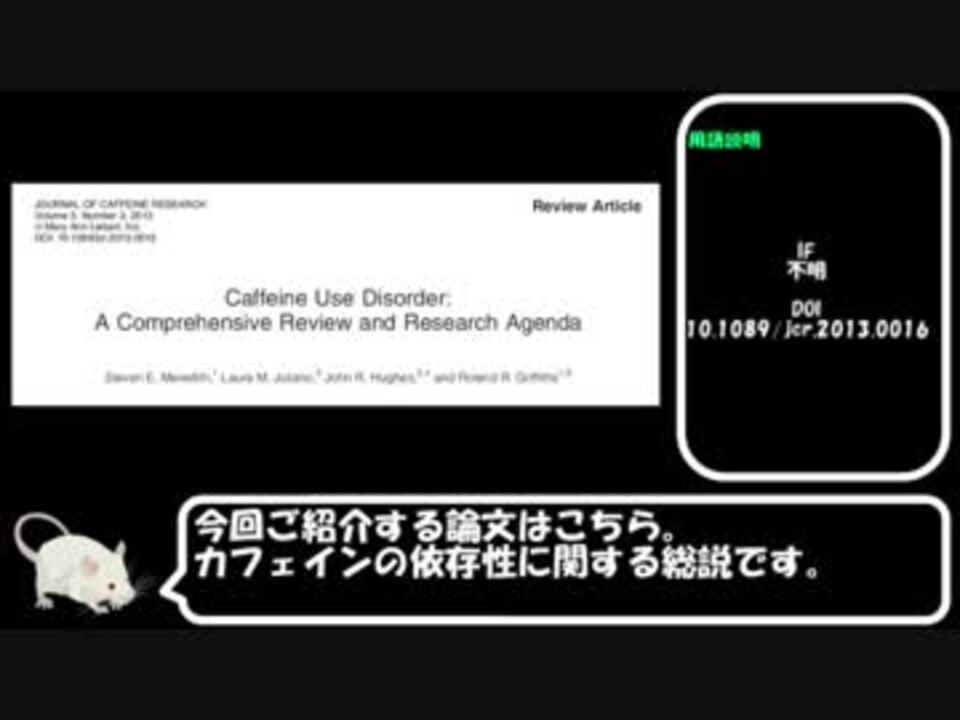遅くなってすいません、許してください何でもしm(ry<br />広告誠にアリシャス!<br />2017年9/19,20,21,23<br /><br />Part4→<a href="https://www.nicovideo.jp/watch/sm31741698" class="watch">sm31741698</a><br />Part6→<a href="https://www.nicovideo.jp/watch/sm31998681" class="watch">sm31998681</a><br /><br />これまで作ったもの<br /><a href="https://www.nicovideo.jp/mylist/55689059" target="_blank" rel="noopener">mylist/55689059</a><br />カフェインシリーズマイリスト<br /><a href="https://www.nicovideo.jp/mylist/59434345" target="_blank" rel="noopener">mylist/59434345</a><br /><br />ご意見、ご感想、ご要望などはこちらへ<br /><a href="https://twitter.com/lifesch_doc_P" target="_blank" rel="noopener nofollow">https://twitter.com/lifesch_doc_P</a><br /><br />お借りしたイラスト<br />© 2016 DBCLS 統合TV, licensed under Creative Commons Attribution 4.0 International license (CC-BY-4.0)<br /><a href="http://www.ac-illust.com/" target="_blank" rel="noopener nofollow">http://www.ac-illust.com/</a><br />お借りしたBGM<br /><a href="https://dova-s.jp/bgm/play4484.html" target="_blank" rel="noopener nofollow">https://dova-s.jp/bgm/play4484.html</a><br />引用文献doi:10.1089/jcr.2013.0016