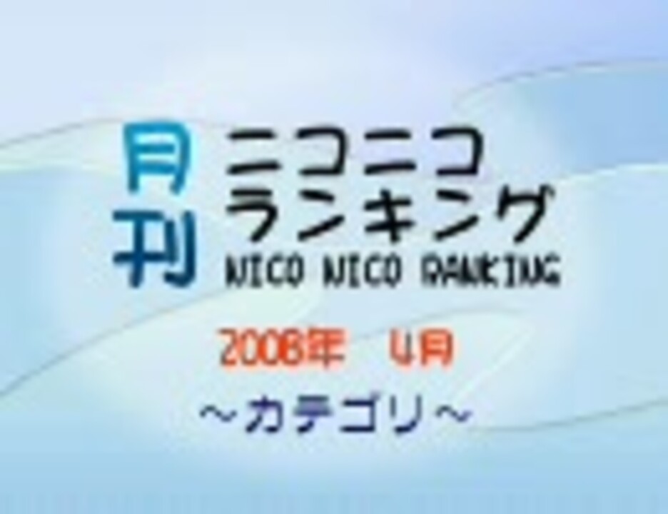 ★集計期間:4月1日6時~5月1日0時<br />★集計対象:全カテゴリ各100位(ランク外は0ポイント扱い)<br />★集計方法<br />動画ポイント:再生数+コメント数×補正値+マイリスト登録数×20<br />カテゴリポイント:カテゴリ所属動画の動画ポイントの合計<br /><br />★紹介動画へのリンクはこちらから→公開終了しました↓からどうぞ<br />★全集計結果一覧はこちらからどうぞ→<a href="http://www39.atwiki.jp/niconicoranking/" target="_blank" rel="noopener nofollow">http://www39.atwiki.jp/niconicoranking/</a><br />★@カテゴリ2008年3月→<a href="https://www.nicovideo.jp/watch/sm2979450" class="watch">sm2979450</a> 2008年5月→<a href="https://www.nicovideo.jp/watch/sm3740459" class="watch">sm3740459</a><br /><br />★2008年4月総合→<a href="https://www.nicovideo.jp/watch/sm3209855" class="watch">sm3209855</a><br /><br />吉幾三タグは容量の都合上カットしました。結果一覧または各種個別ランキングをご覧下さい。