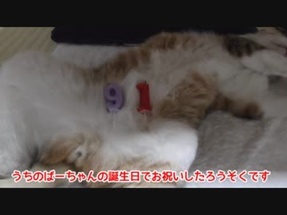 バンザイ猫のお腹に91歳のろうそくのっけてみた 6:33