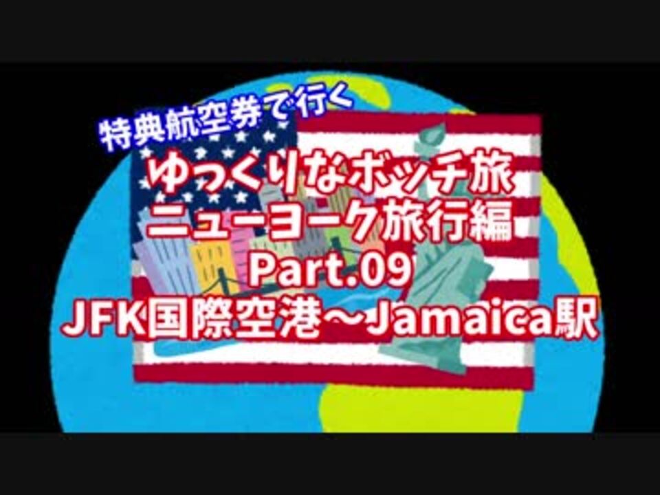 【ゆっくり】ゆっくりなボッチ旅 ニューヨーク旅行編 Part.09【ボッチ】<br />1日目<br />JFK国際空港~Jamaica駅<br /><br />2017年八月に米国はニューヨークに行ってきました。<br />JFK国際空港の入国審査を抜け、一路宿に向かいます。<br />ホントは着く予定だったのですが、分割に…<br />Twitter: @elmarit44<br />#風邪で先週投稿できなくて申し訳ないm(__)m<br /><br />次:<a href="https://www.nicovideo.jp/watch/sm32258113" class="watch">sm32258113</a><br />前:<a href="https://www.nicovideo.jp/watch/sm32137451" class="watch">sm32137451</a><br />Part.01はこちら:<a href="https://www.nicovideo.jp/watch/sm31853566" class="watch">sm31853566</a><br />2017年ニューヨーク旅行:<a href="https://www.nicovideo.jp/mylist/59688559" target="_blank" rel="noopener">mylist/59688559</a><br /><br />□過去のシリーズ<br />2017年台北旅行:<a href="https://www.nicovideo.jp/mylist/58686511" target="_blank" rel="noopener">mylist/58686511</a><br /><br />□撮影機材<br />SONY HDR-AS300<br />Panasonic LUMIX DMC-GX7MK2<br /><br />□動画作成<br />・ゆっくりMovie Maker3<br />・AviUtl<br />・x264guiEx<br />・けいふぉんと<br />・いらすとや<br />・無料効果音で遊ぼう!<br />・音楽研究所<br />
